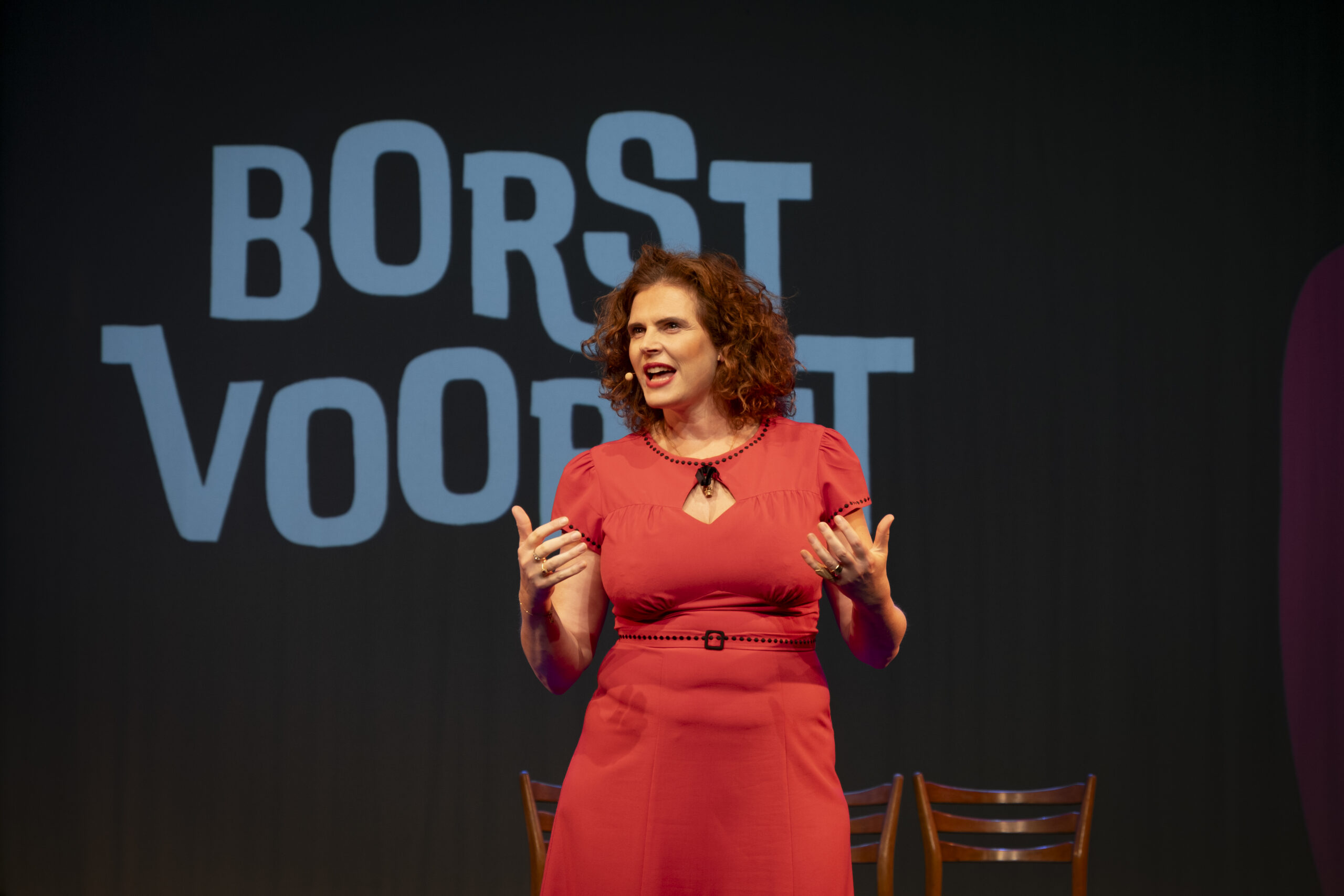 In Borst Vooruit neemt Pia Naber, zelf borstkankerpatiënt, het publiek mee op haar persoonlijke reis. Met scherpe teksten, krachtige liedjes en verrassende invalshoeken bekijkt zij, samen met onder andere een echte chirurg, haar dochters, en muzikanten, het ziekteproces van meerdere kanten. Onderwerpen als ‘shared decision making’, de lol van het protocol, en het absurde van het ziek-zijn worden op eigenzinnige en herkenbare wijze neergezet. En ja, lachen mag.