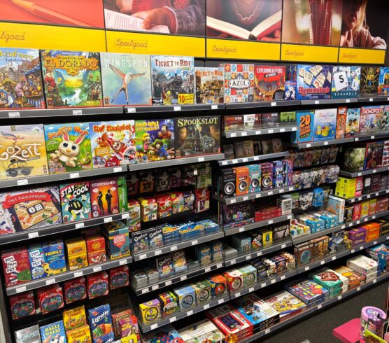 Titels als Exploding Kittens, verschillende varianten van Dobble, Ticket to Ride (allen van nieuwe leverancier Asmodee) en nog vele andere party spellen completeren de collectie waar onder andere bestsellers als Hitster en 30 Seconds al deel van uitmaakten. Eigenaar Joep Gommans is trots op zijn uitbreiding: “Na Pokémon wederom een mooie toevoeging aan het assortiment. Mensen hoeven het dorp niet meer uit om een leuk cadeau te kopen.”