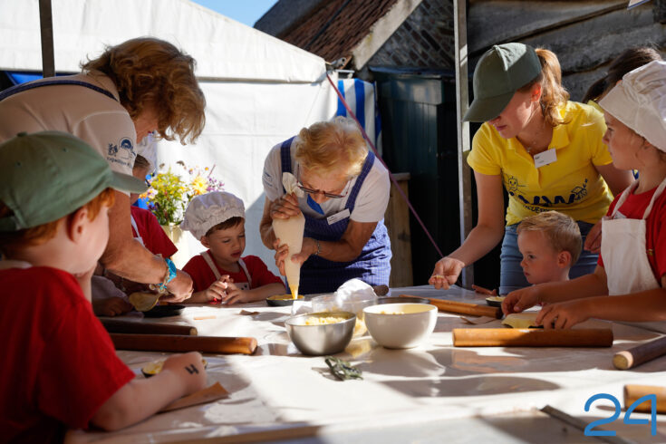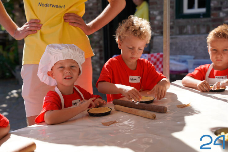 Na de opening namen de kinderen afscheid van hun ouders en gingen zij, samen met de vrijwilligers, in groepjes aan de slag. Vandaag wordt er onder andere geknutseld en vlaaitjes gebakken.