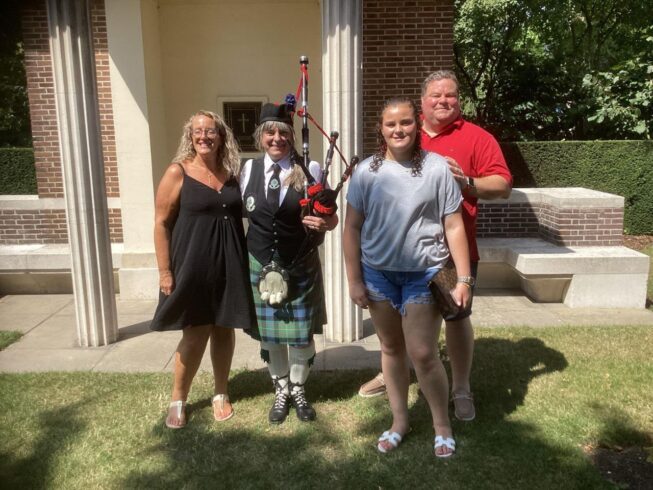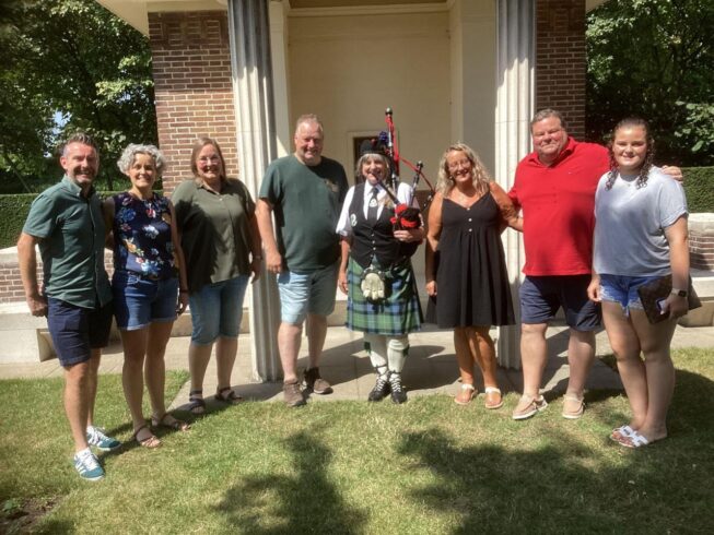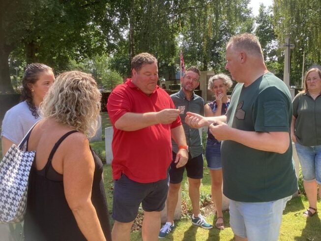 Op het Brits militair kerkhof in Nederweert werd het gezelschap welkom geheten door William Schreuders, secretaris van de stichting. Ook was Jeanine Stassen aanwezig voor muzikale begeleiding. Het was een heel bijzonder en speciaal bezoek voor de familie, die ontzettend dankbaar waren wat ze als stichting voor hen hebben gedaan en georganiseerd.