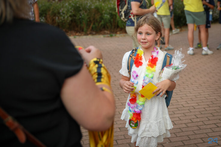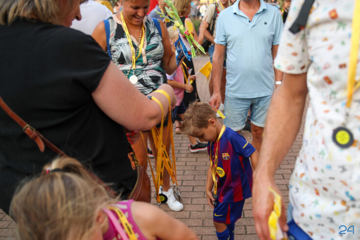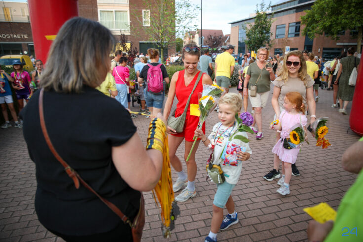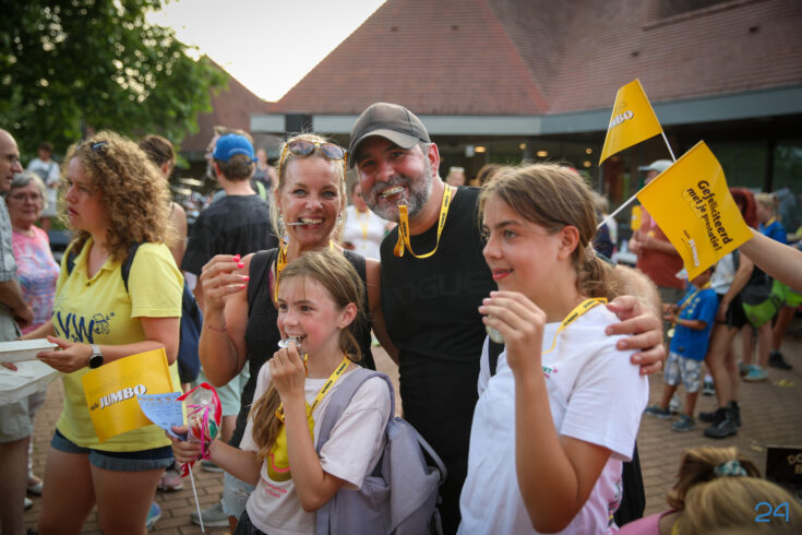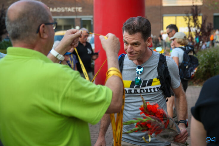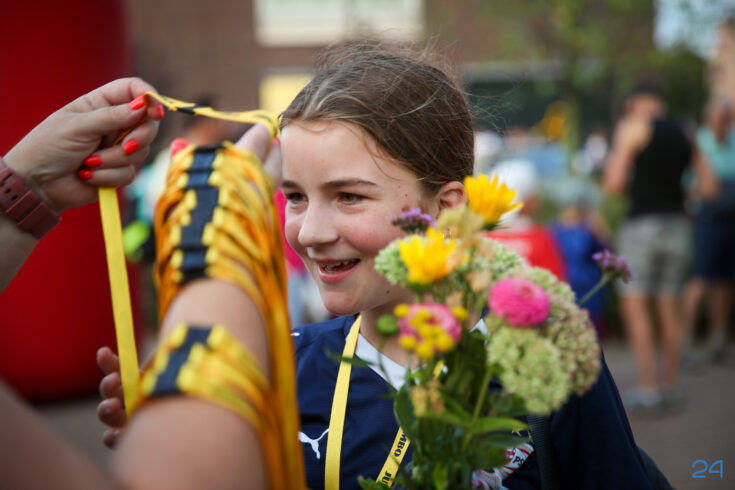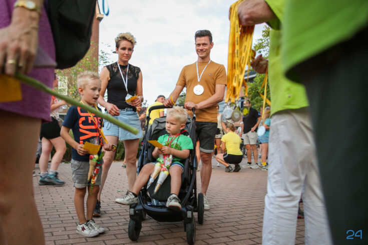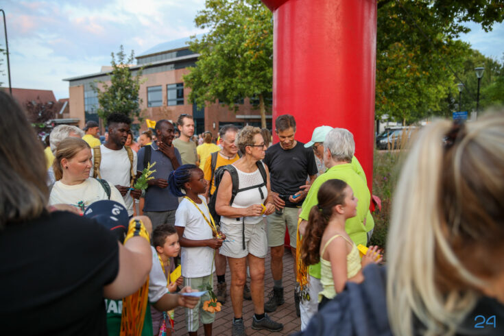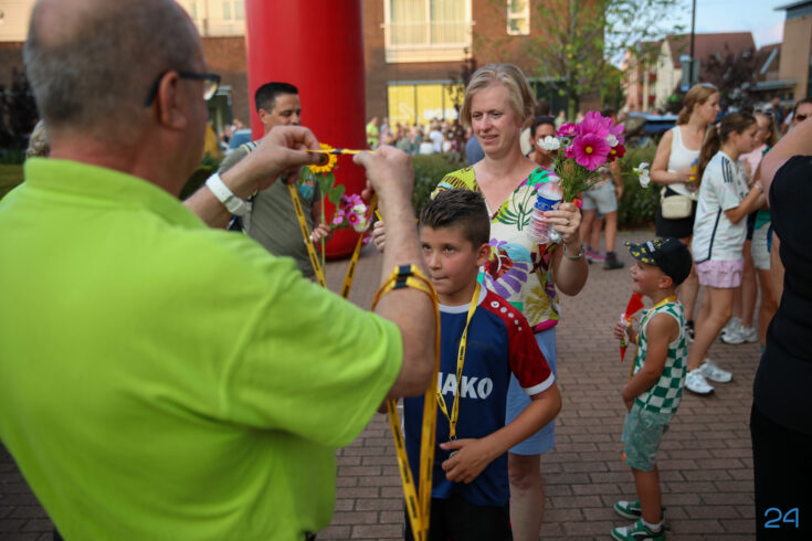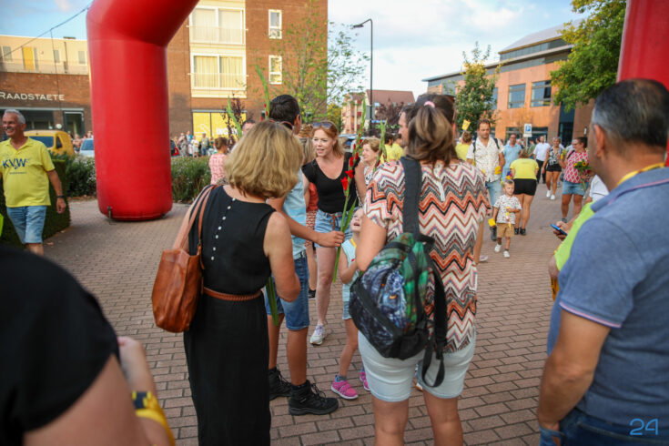 Vrijdagavond werden de wandelaars van de KVN Wandelvierdaagse in Nederweert feestelijk onthaald op het Raadhuisplein, voor het gemeentehuis in Nederweert. Familie, vrienden en bekenden stonden klaar met bloemen om de deelnemers te verwelkomen na vier dagen wandelen.