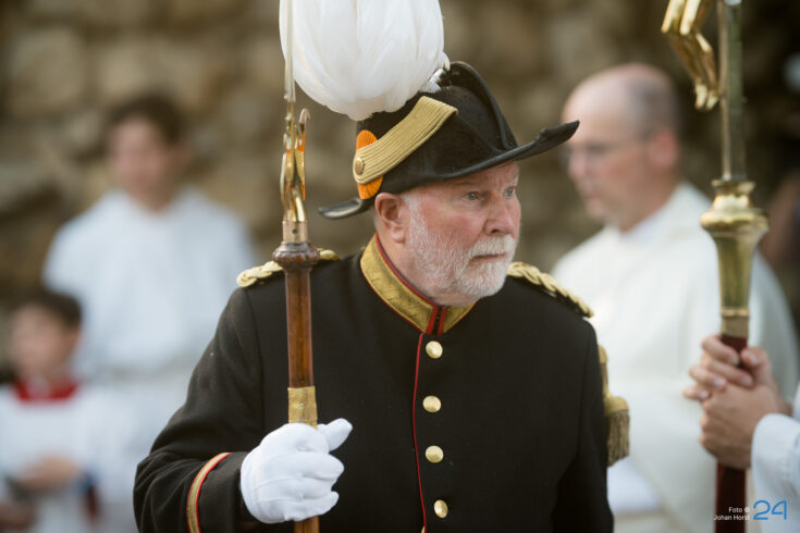 Bij de Lourdesgrot kregen de broeders en zusters die het afgelopen jaar zijn toegetreden tot de Broederschap hun broederschapsmedaille opgespeld.