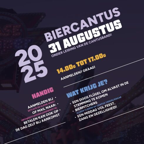Waar de Cantusband verschijnt, staat de tent in korte tijd helemaal op z’n kop. Denk aan lange biertafels, tekstbundels in de hand, een koud biertje binnen handbereik en een knallende liveband op het podium. Wat volgt is een onvervalst zangfestijn met de aller-aanstekelijkste meezingers aller tijden, van klassiekers tot de beste Nederlandstalige hits. Dit is geen gewoon feest… dit is een biercantus zoals je ‘m nog nooit hebt meegemaakt.