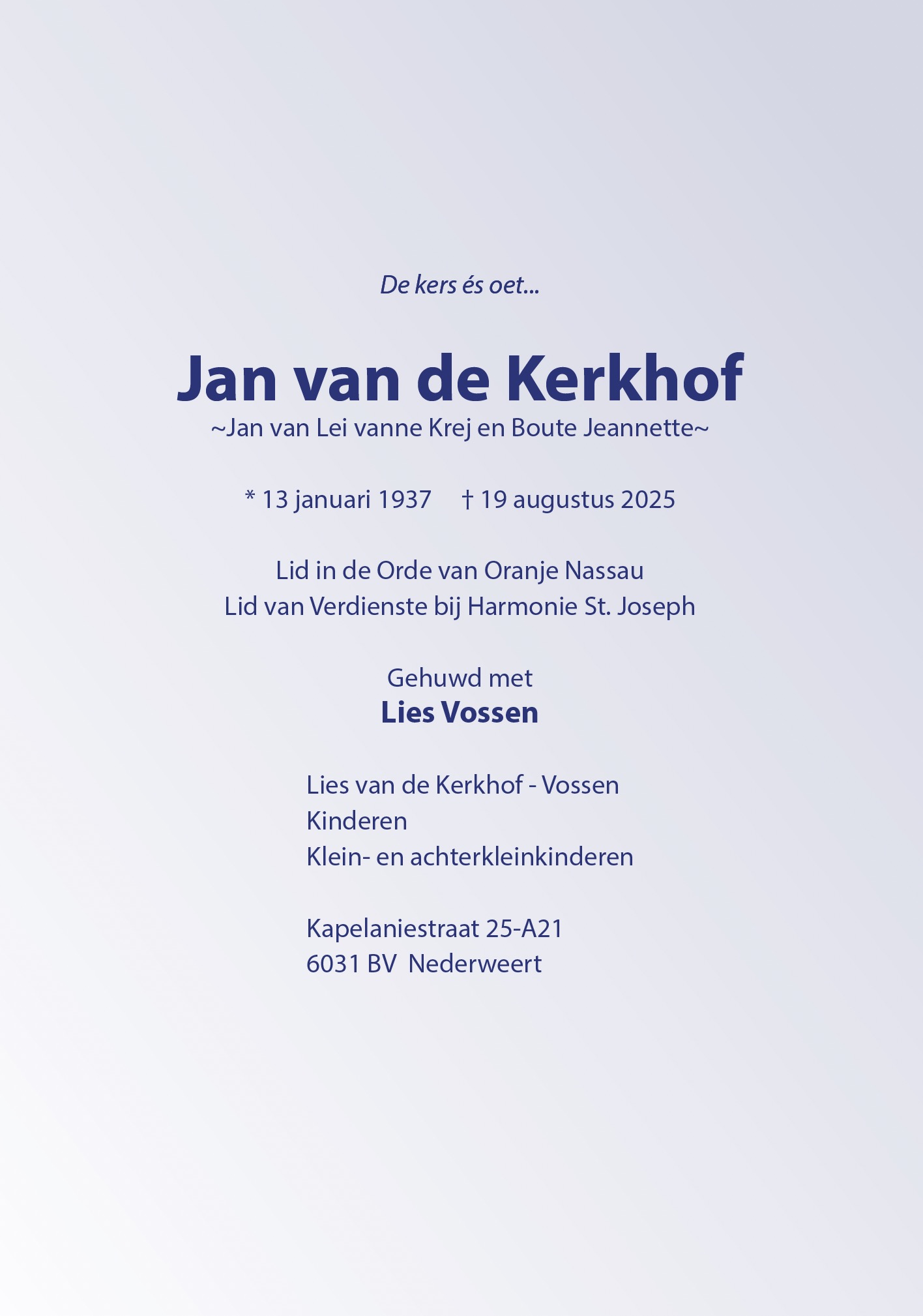 Overlijdensbericht | Jan van de Kerkhof †
