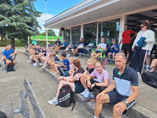 Het begon fijn, want iedereen kreeg een gum om zijn eventuele fouten uit te gummen en weer snel verder te kunnen gaan. Onder een heerlijk zonnetje en met weinig wind werden er hele leuke wedstrijden gespeeld. Menig ouder was verbaasd over de prestaties en het enthousiasme van zijn of haar kind. Helaas was de tweede pauze één te veel. Want in de wedstrijden hierna werd het een drietal papa’s te veel. Beterschap!