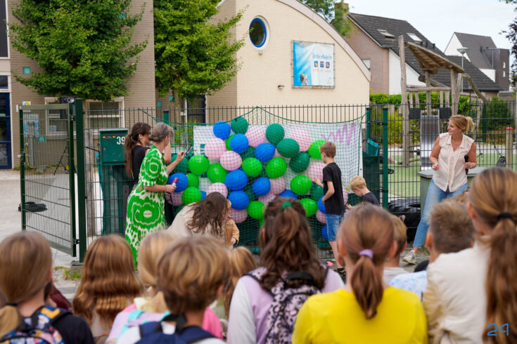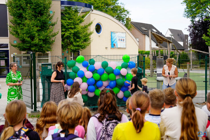 De onthulling werd groots gevierd. De kinderen werden buiten verzameld en mochten bij het hek kijken, waar ballonnen en een groot net hingen. Een aantal kinderen kreeg de eer om de ballonnen lek te prikken, waarna het nieuwe logo onthuld werd.
