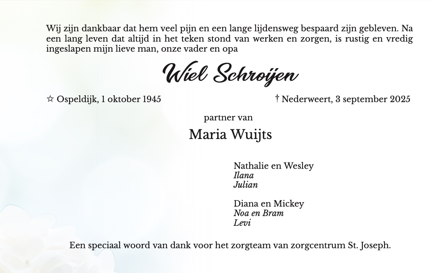 13. Gecondoleerd familie Schroijen met Wiel heel veel sterkte