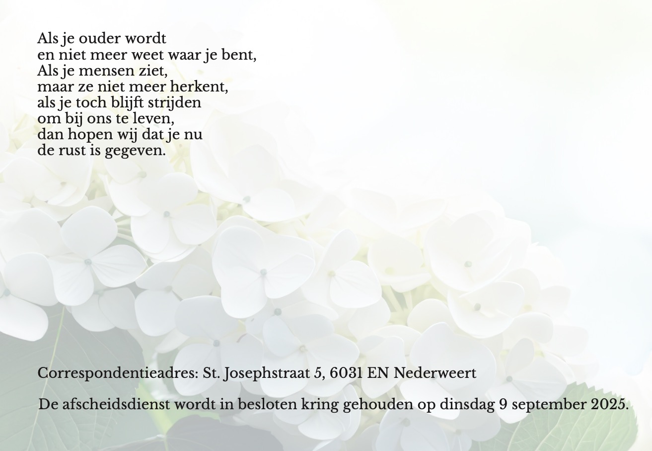 17. Beste Maria, Nathalie en familie gecondoleerd met het verlies van Wiel. Heel veel sterkte toegewenst in deze moeilijke periode.