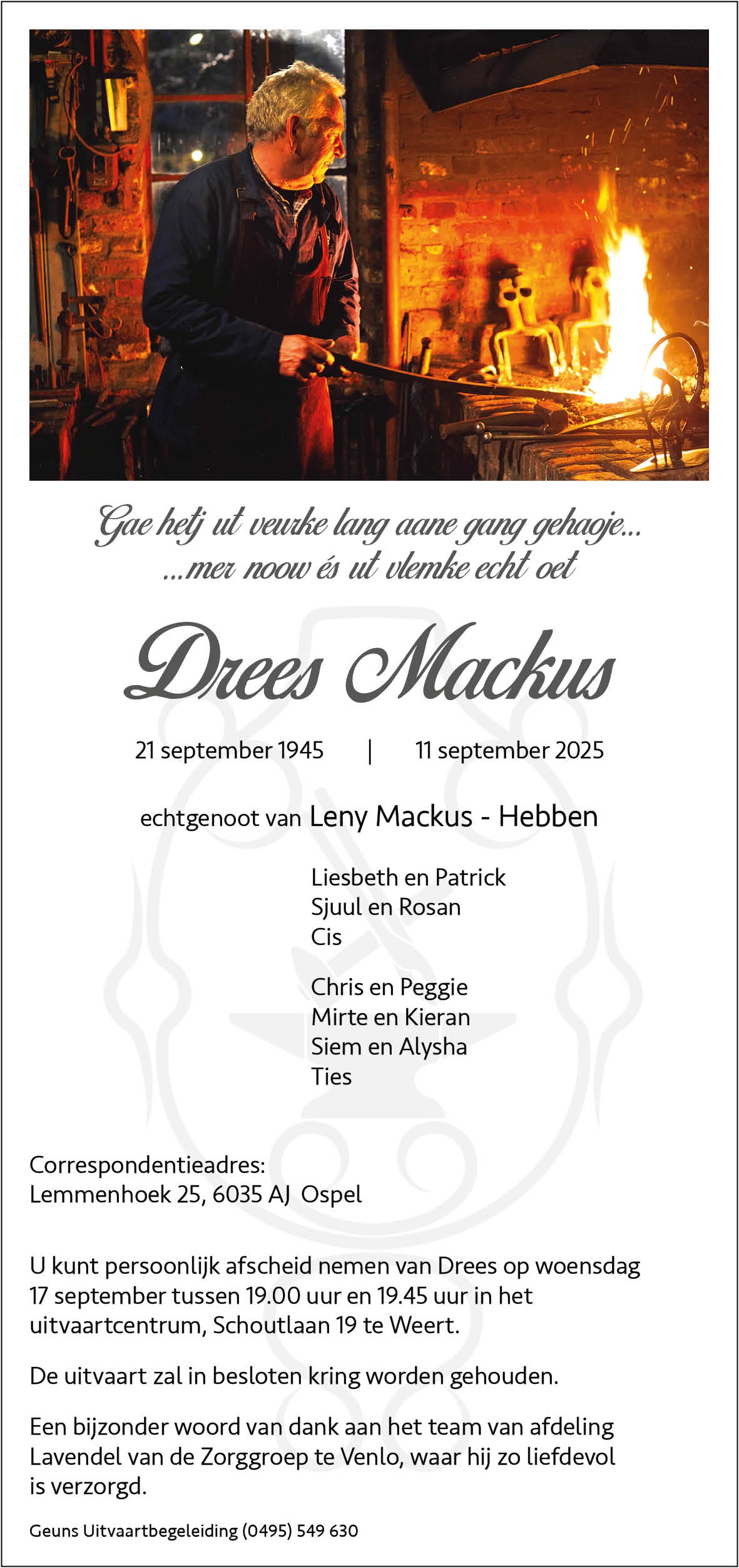 19. Gecondoleerd met het verlies van Drees. Heel veel sterkte Leny kinderen en kleinkinderen.