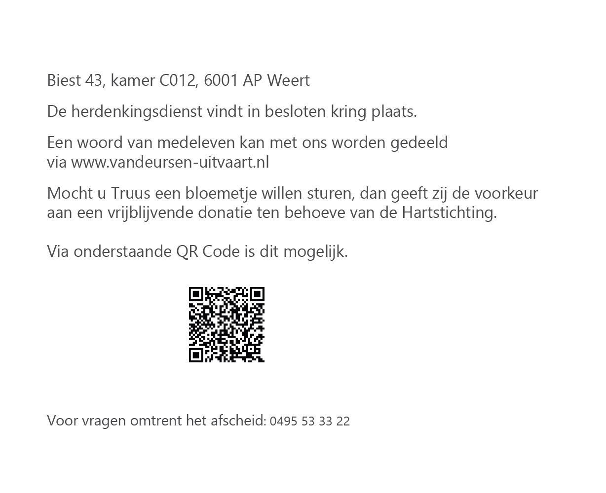 Truus en kinderen, kleinkinderen, heel veel kracht en sterkte met dit grote verlies.