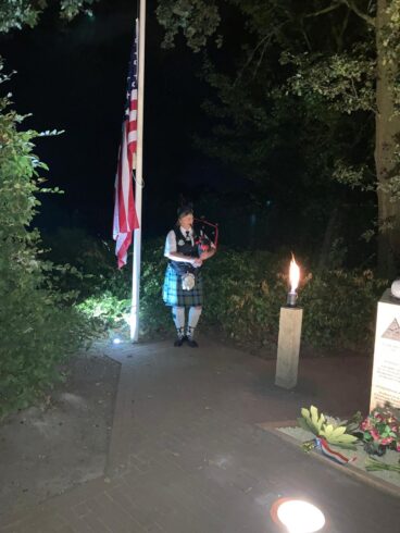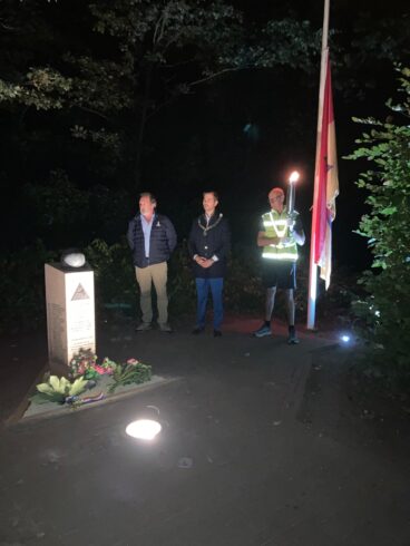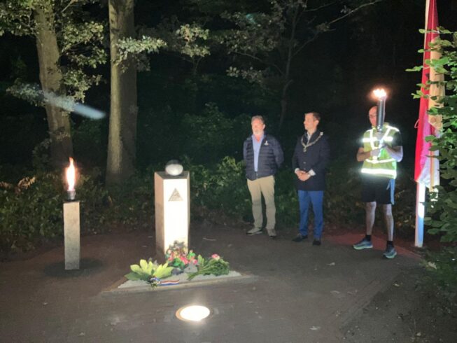 Na afloop liep De Grenslaupers met de fakkel verder naar het Amerikaanse monument in Ospel.