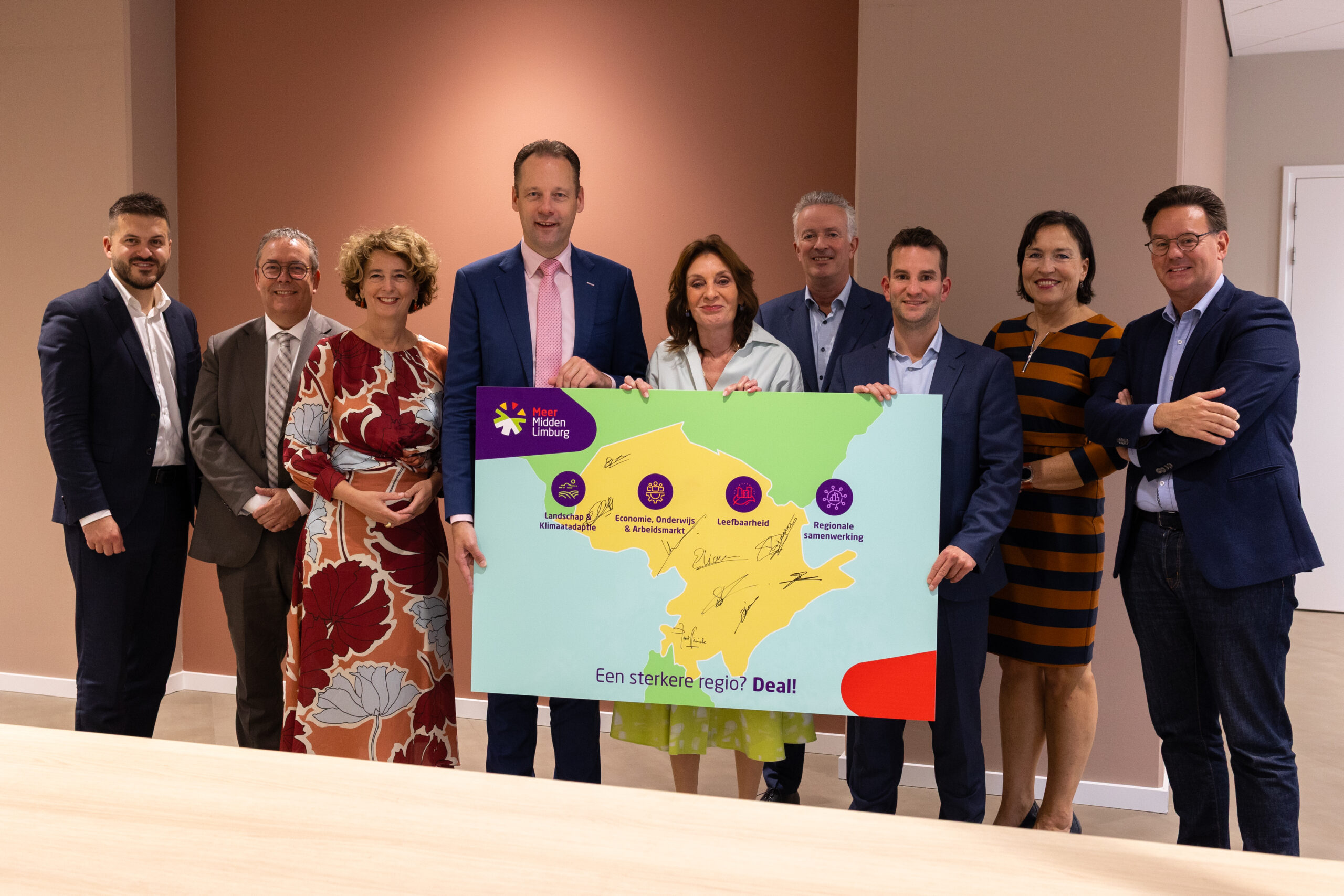 Acht samenwerkende partners ondertekenden 24 september de samenwerkingsovereenkomst Regio Deal Midden-Limburg. De ondertekening vond plaats tijdens het eerste Regio-Provincieoverleg tussen zeven Midden-Limburgse gemeenten en de Provincie Limburg.