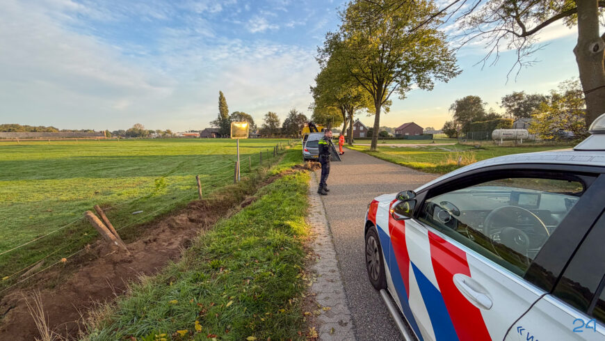 Donderdagochtend is op de Winnerstraat in Nederweert een personenauto in de sloot beland.