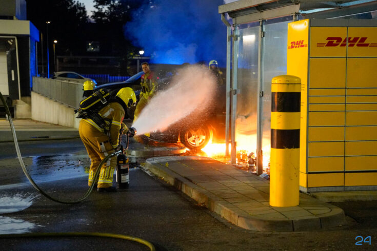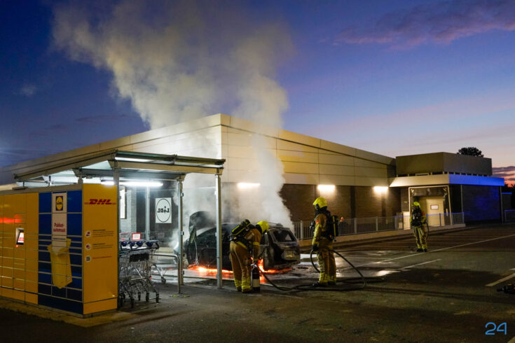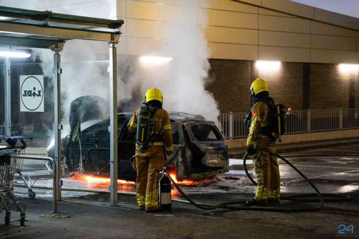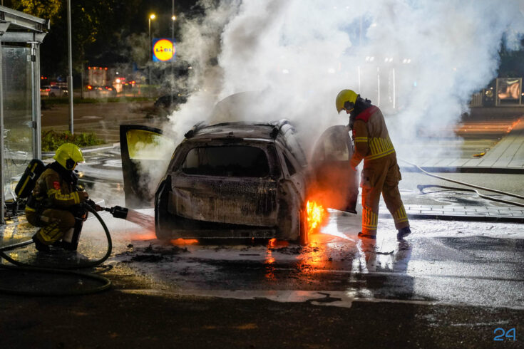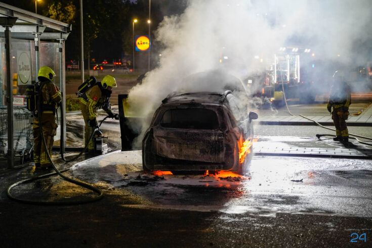 Op dinsdagochtend rond 6:30 vatte er een auto vlam op de parkeerplaats van de Lidl aan de Serviliusstraat in Weert.