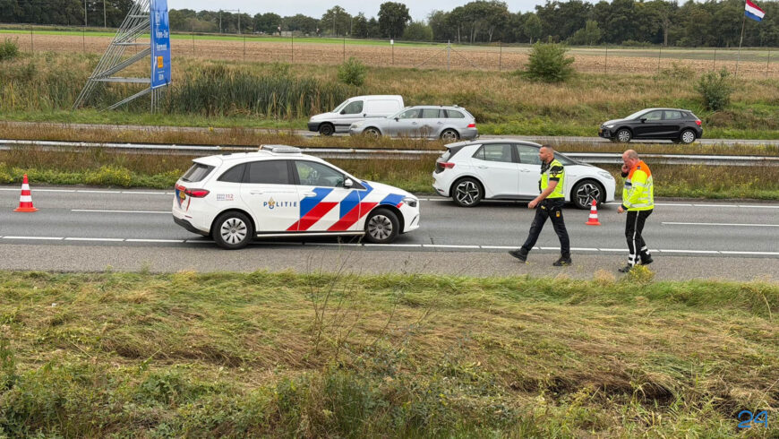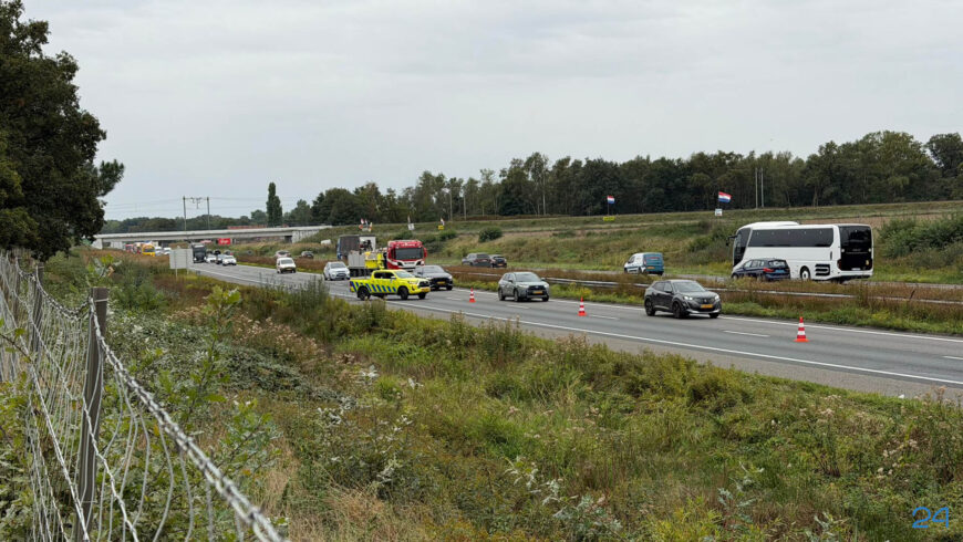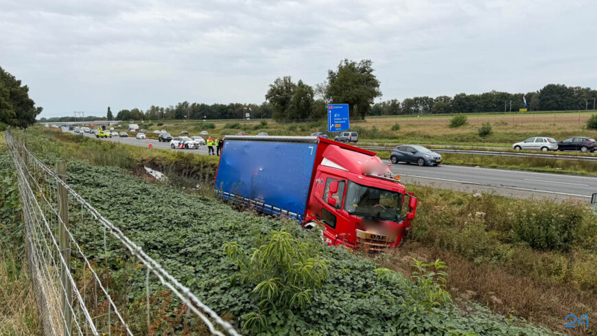 De linkerbaan is afgesloten om de vrachtwagen uit de berm te halen. Dit zorgt voor een flinke file in noordelijke richting. Ook in de tegenovergestelde rijrichting is er vertraging.