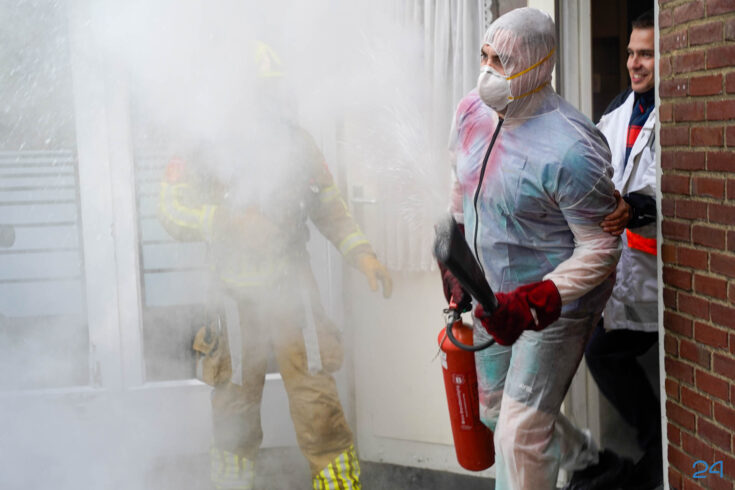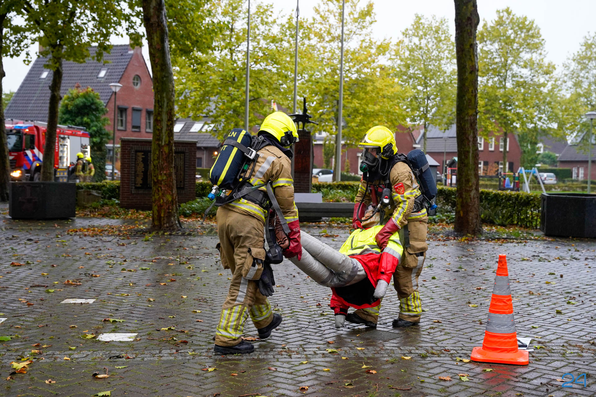 Ook in Nederweert waren de verschillende ploegen de hele dag actief. De oefening die op het Raadhuisplein op de planning stond, kon vanwege het slechte weer niet plaatsvinden. Deze werd daarom verplaatst naar een loods van Salimans aan de Booldersdijk.