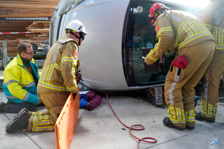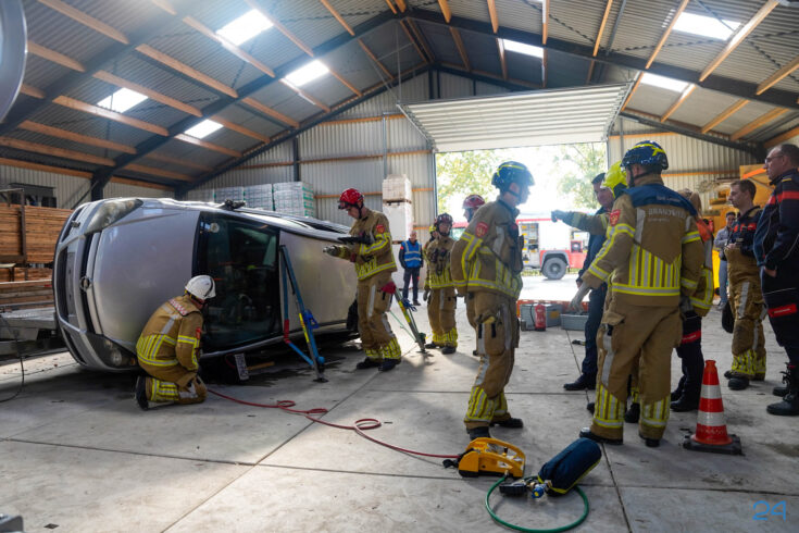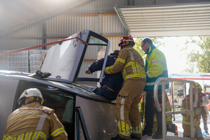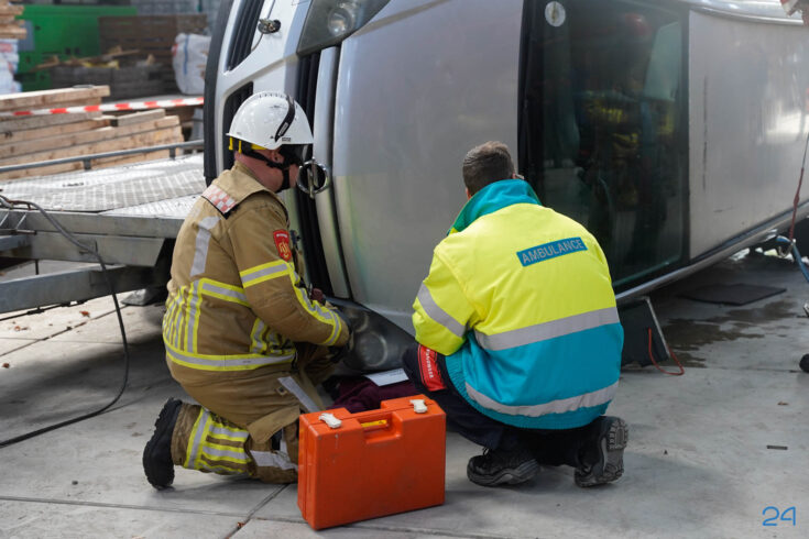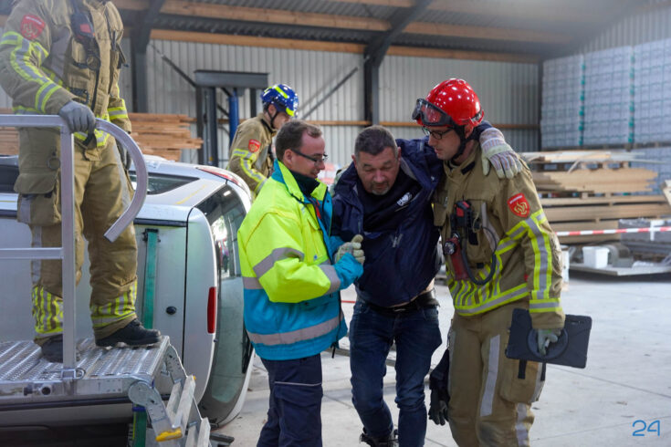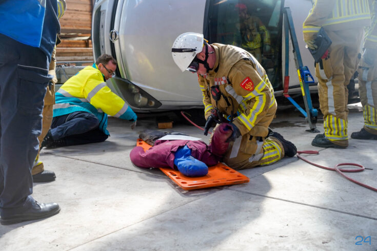 Het eerste oefenscenario waarmee de ploeg van Nederweert aan de slag ging vond vanochtend plaats in Meijel. In dit scenario was een man bekneld geraakt onder de aanhanger van zijn bedrijfsbus. Daarnaast was een reservoir van de vervoerde vloeistof op de aanhanger gaan lekken, wat voor een potentieel gevaarlijke situatie zorgde. Aan de ploeg de taak om de man veilig te bevrijden en het lek onder controle te krijgen.
