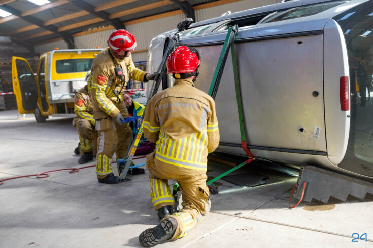 In het scenario was een auto van een bergingsvoertuig gevallen. In de auto, waaruit luide muziek klonk, zat een vermoedelijk dronken man. Een medewerker van de berger was onder het voertuig bekneld geraakt. De opdracht voor de brandweer was om de auto voorzichtig op te tillen en de man eronderuit te halen. Tegelijkertijd moest de inzittende via de bovenzijde van het voertuig worden bevrijd met behulp van een verhoging.