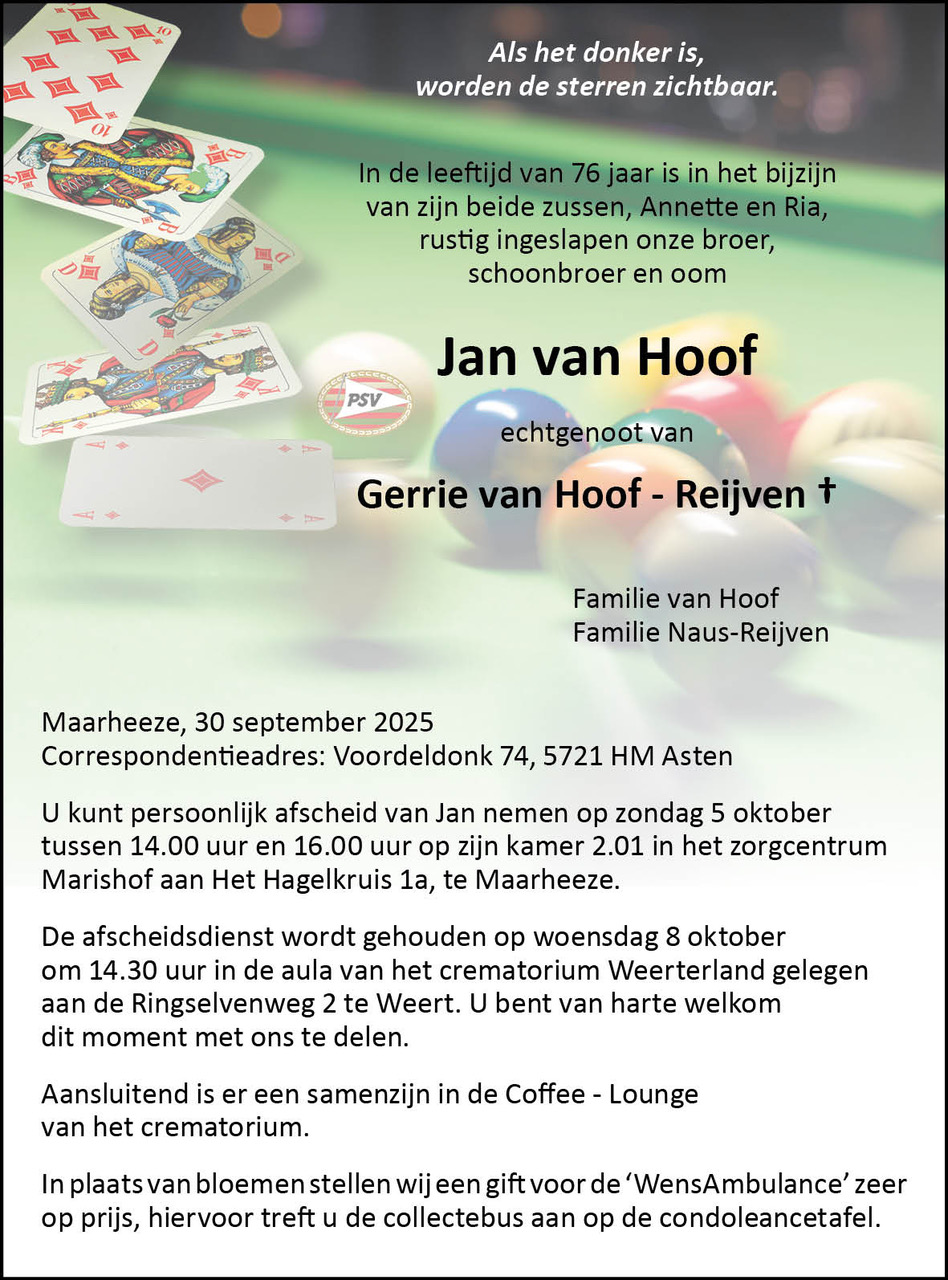 Overlijdensbericht | Jan van Hoof †