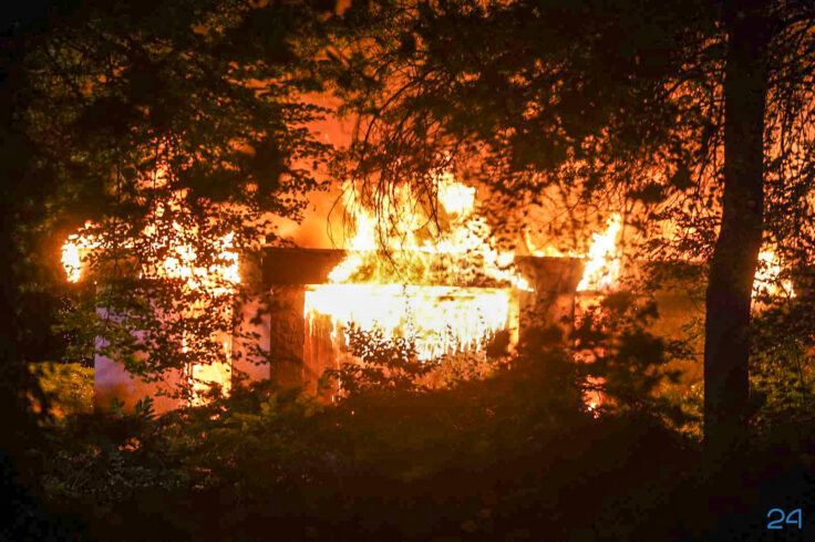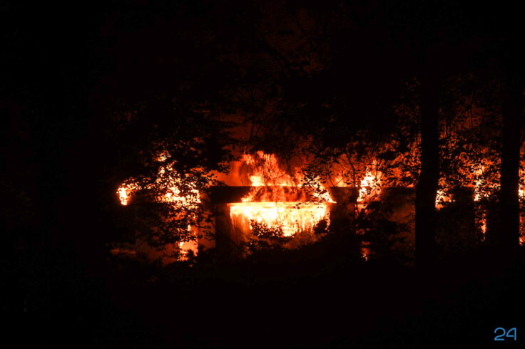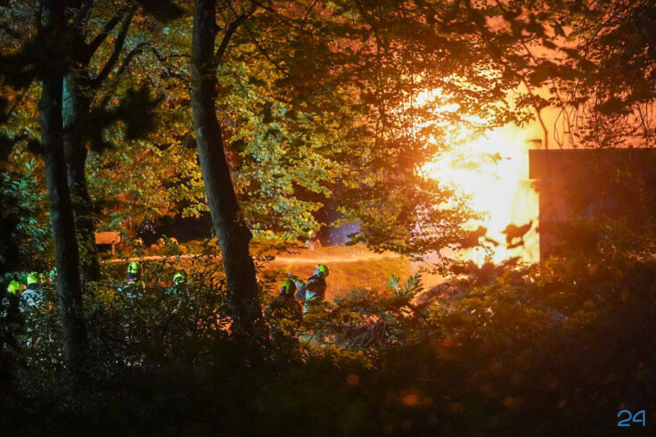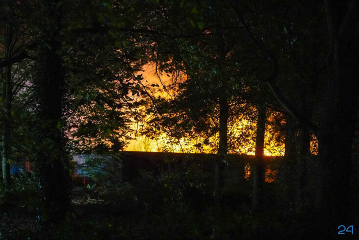 Toen de brandweer ter plaatse kwam stond het pand, een woning, volledig in vuur en vlam. “Het pand kan als verloren worden beschouwd“, aldus een woordvoerder van de brandweer. “Het gaat om een leegstaand pand. Het terrein is afgezet met bouwhekken. Voor zover bekend raakt niemand gewond“.