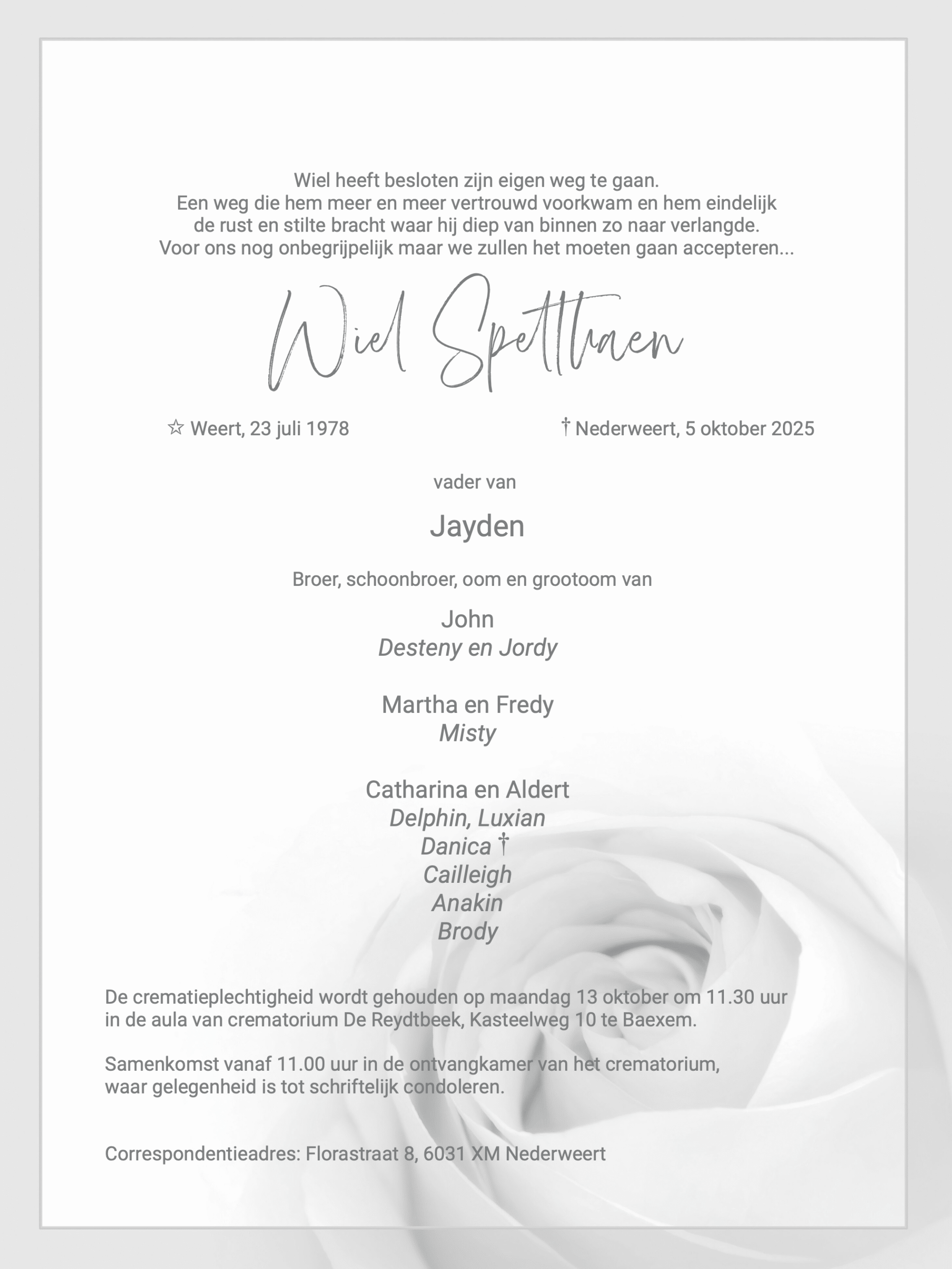 Gecondoleerd met het overlijden van wiel ik wens de familie heel veel sterkte toegewenst
