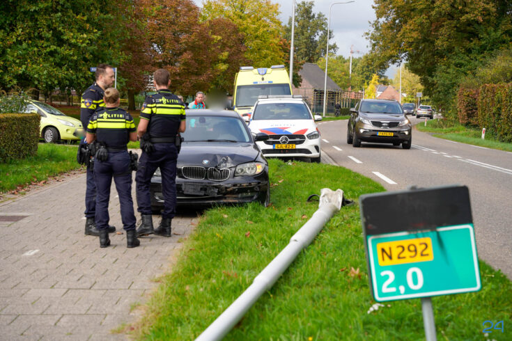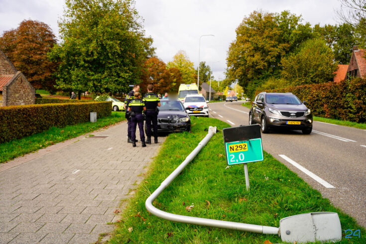 De bestuurder verloor de controle over het voertuig en botste tegen een lantaarnpaal. Omdat de auto in de brede berm tot stilstand kwam, ondervond het overige verkeer geen hinder van het ongeval.