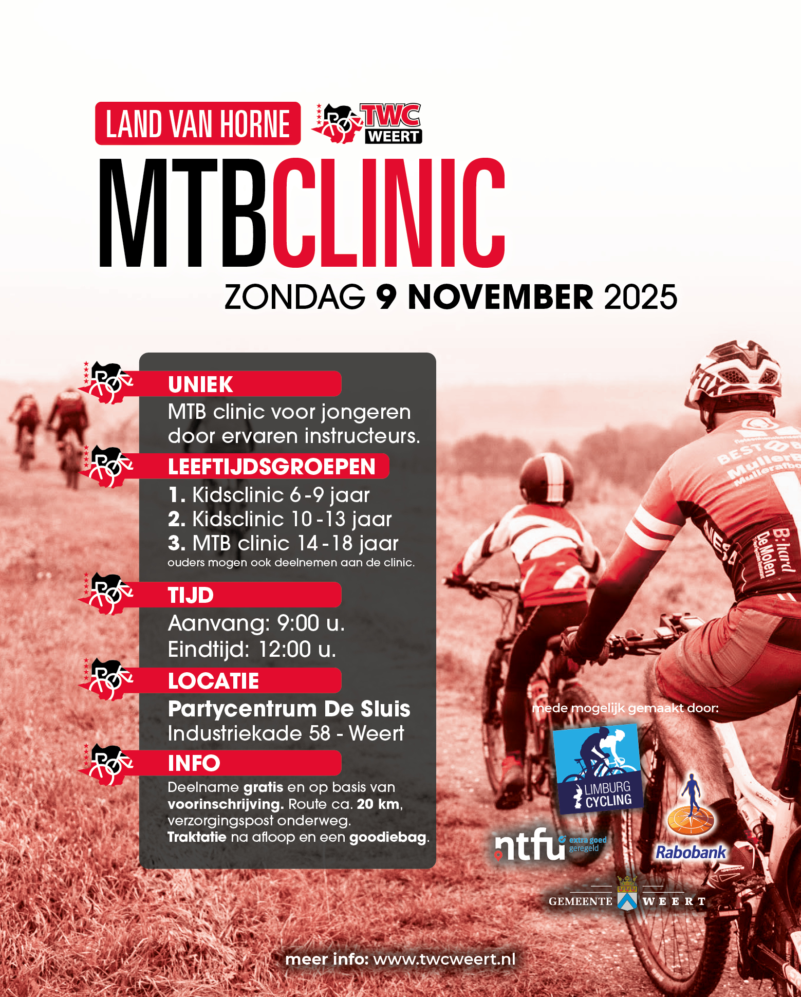 Onder begeleiding van een gecertificeerde trainer en ervaren begeleiders van TWC Weert leren de deelnemers de basisvaardigheden van het mountainbiken. Tijdens de clinic worden techniek- en evenwichtsoefeningen afgewisseld met een rit over (delen van) het parcours van de Land van Horne MTB Toertocht.