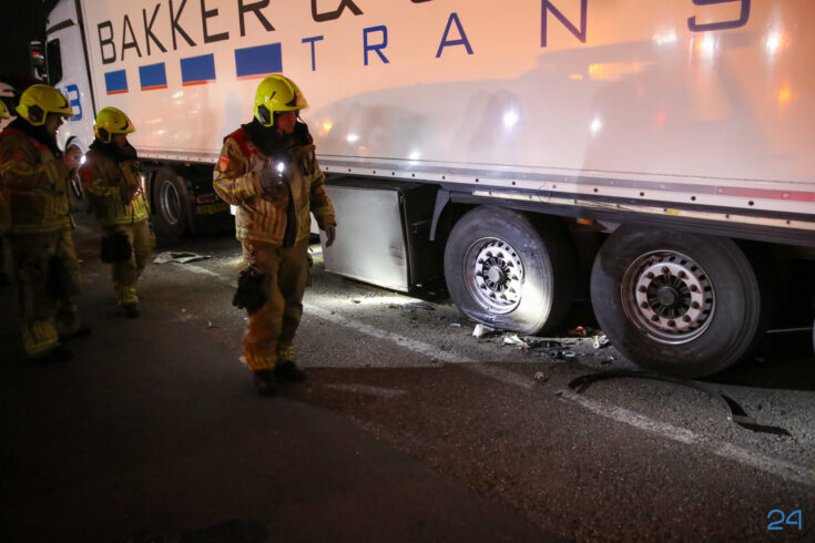 De bestuurder is ter plaatse nagekeken door ambulancepersoneel, maar raakte niet gewond. Beide vrachtwagens liepen aanzienlijke schade op. Bij een van de opleggers raakten meerdere banden beschadigd, terwijl de andere oplegger flinke schade opliep aan de zijkant. Geen van de betrokken voertuigen kon zijn weg vervolgen.