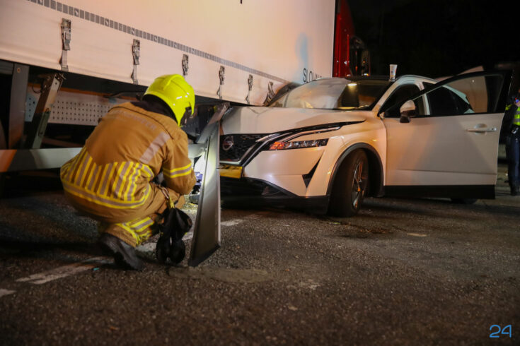 Op dinsdagavond is een personenauto tegen twee geparkeerde vrachtwagens gebotst op de parkeerplaats van verzorgingsplaats Meiberg langs de A2 bij Nederweert. De bestuurder verloor de controle over het voertuig nadat bleek dat de remmen niet functioneerden.