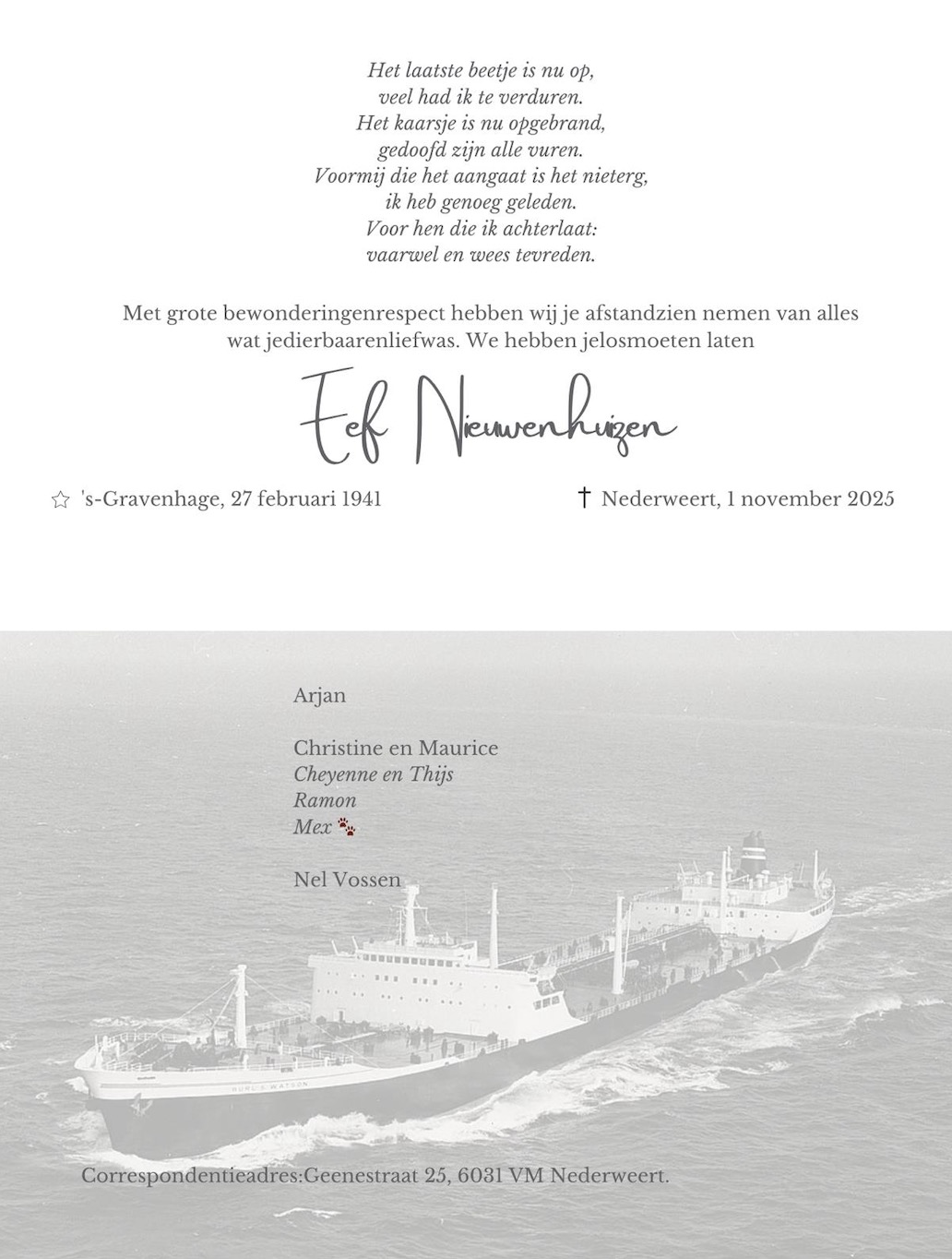Overlijdensbericht | Eef Nieuwenhuizen †