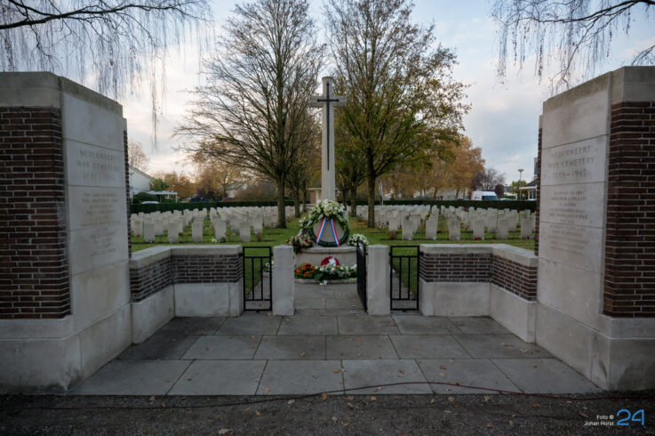 Op zaterdag 8 november kwam de gemeenschap van Nederweert samen op de Britse Begraafplaats om stil te staan bij de offers die zijn gebracht voor onze vrijheid. Onder de gekleurde herfstbladeren en in de verstilde sfeer tussen de witte grafstenen werd herdacht dat vrijheid niet vanzelfsprekend is.