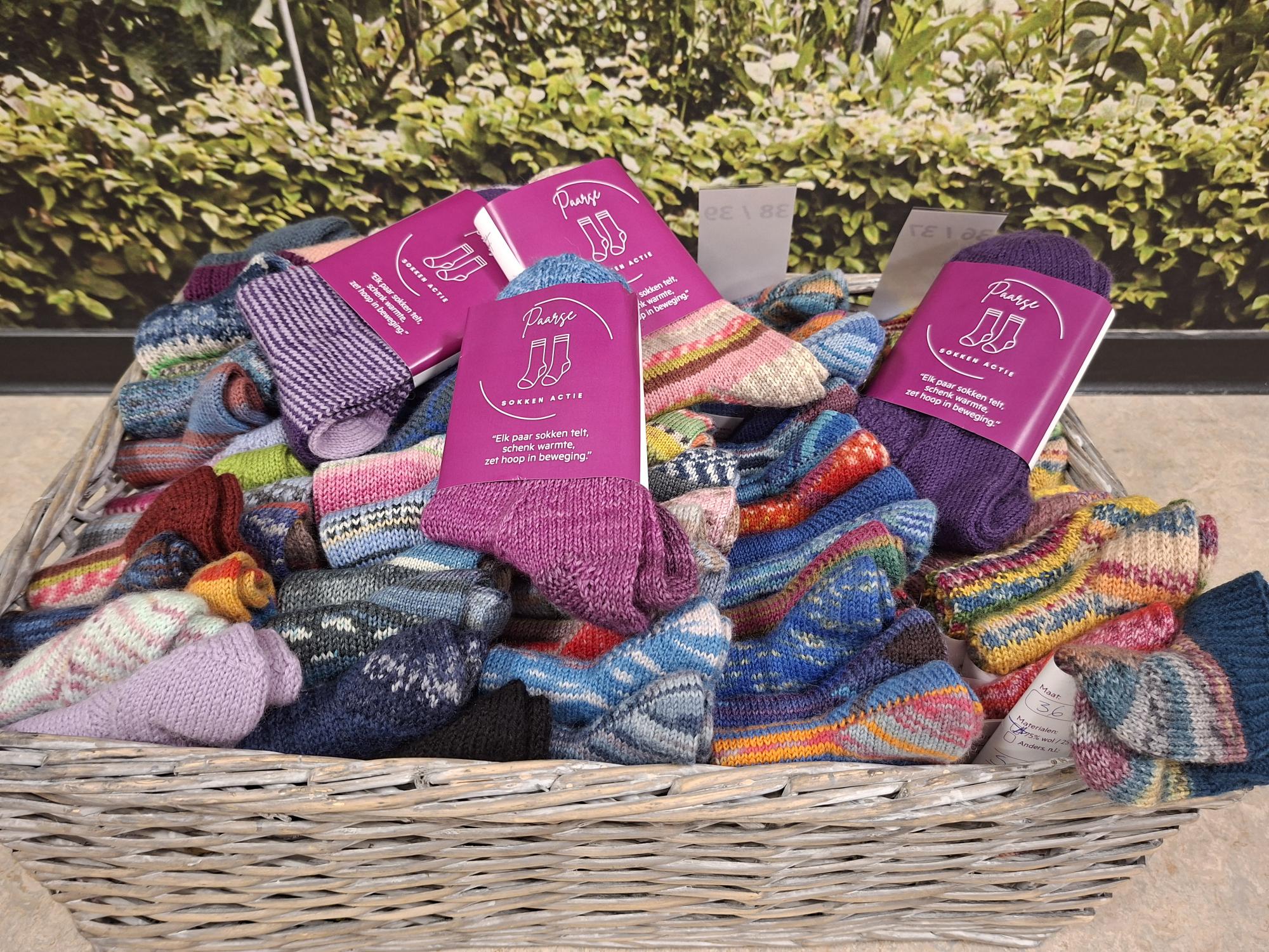 De actie startte op 1 oktober als onderdeel van ‘Soktober‘, de maand waarin handgebreide sokken centraal staan. Wat begon als een klein idee — samen sokken breien voor een goed doel — groeide in korte tijd uit tot een landelijke actie. Breiers uit alle delen van Nederland stuurden sokken op, soms één paar, soms meerdere, en allemaal met dezelfde intentie: warmte en steun geven aan mensen die bezig zijn met een zware behandeling.