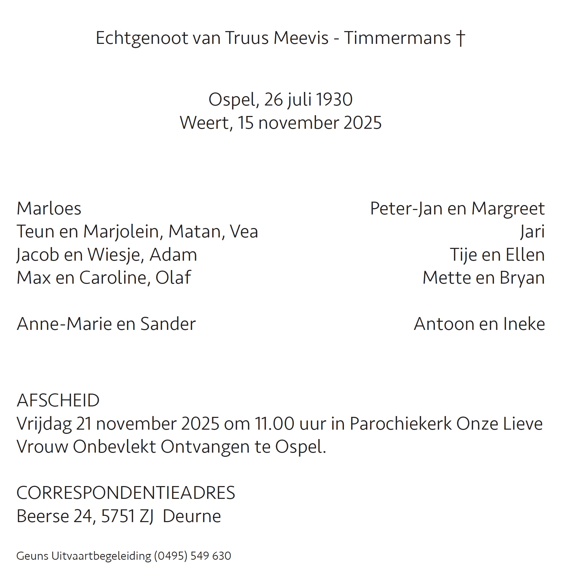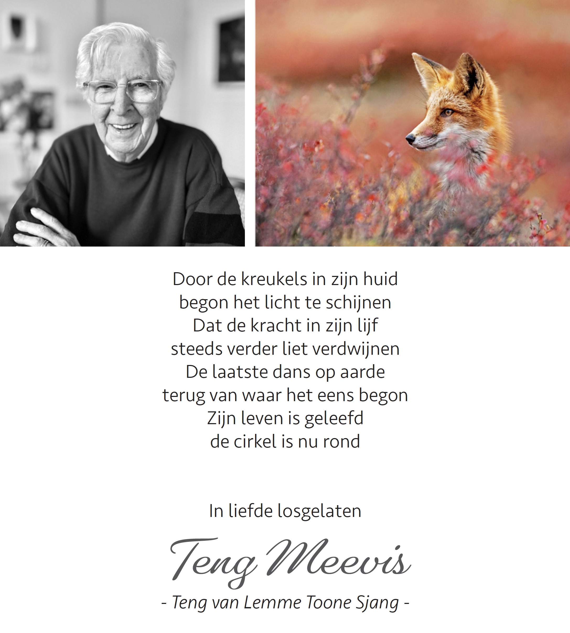 Overlijdensbericht | Teng Meevis †