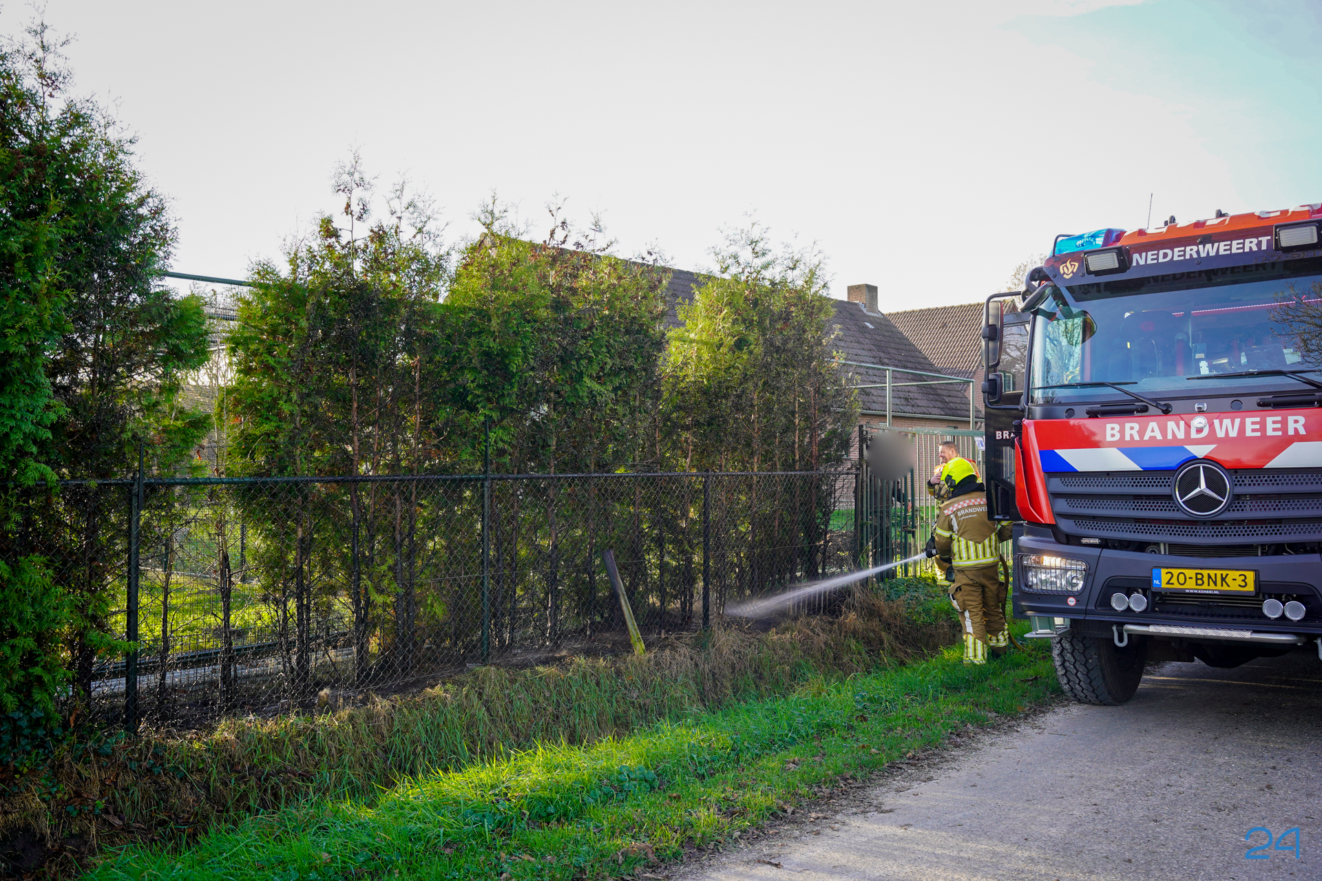 Uiteindelijk was de brandweer snel ter plaatse. Bij aankomst was het vuur grotendeels gedoofd; de brandweer heeft de heg voor de zekerheid nageblust.