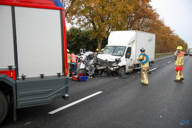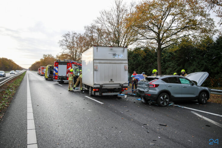 In de rijrichting van Nederweert naar Maastricht kwamen meerdere voertuigen met elkaar in botsing. Een bakwagen botste hard op een kleine personenauto met drie inzittenden. De brandweer moest ingrijpen om de inzittenden uit het voertuig te bevrijden. Hierbij werd door de brandweer een deur opengeknipt. Het ambulancepersoneel en een mobiel medisch team dat per traumahelikopter ter plaatse kwam gaf medische ondersteuning.