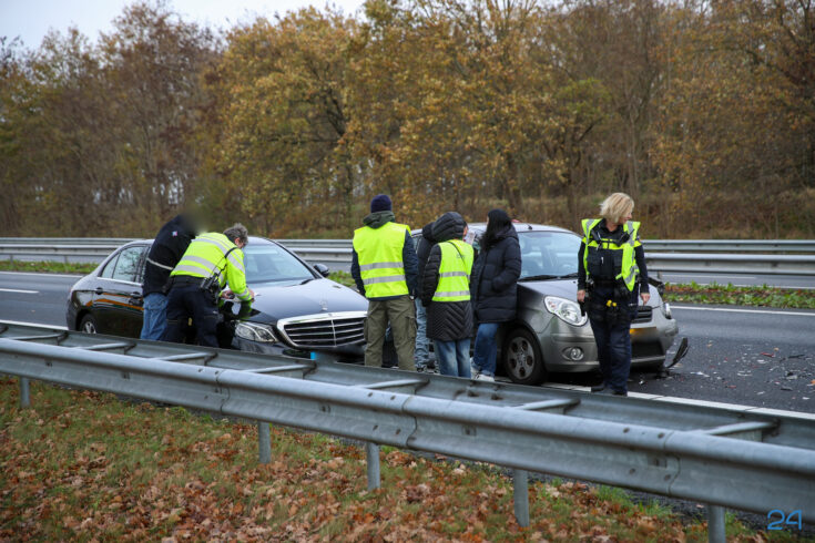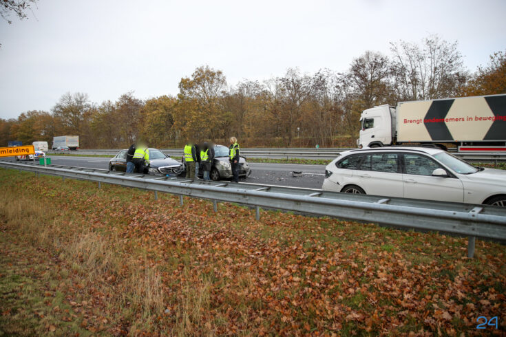Even verderop vond nog een tweede aanrijding plaats, waarbij drie personenauto’s betrokken waren. Hierbij bleef het bij blikschade.
