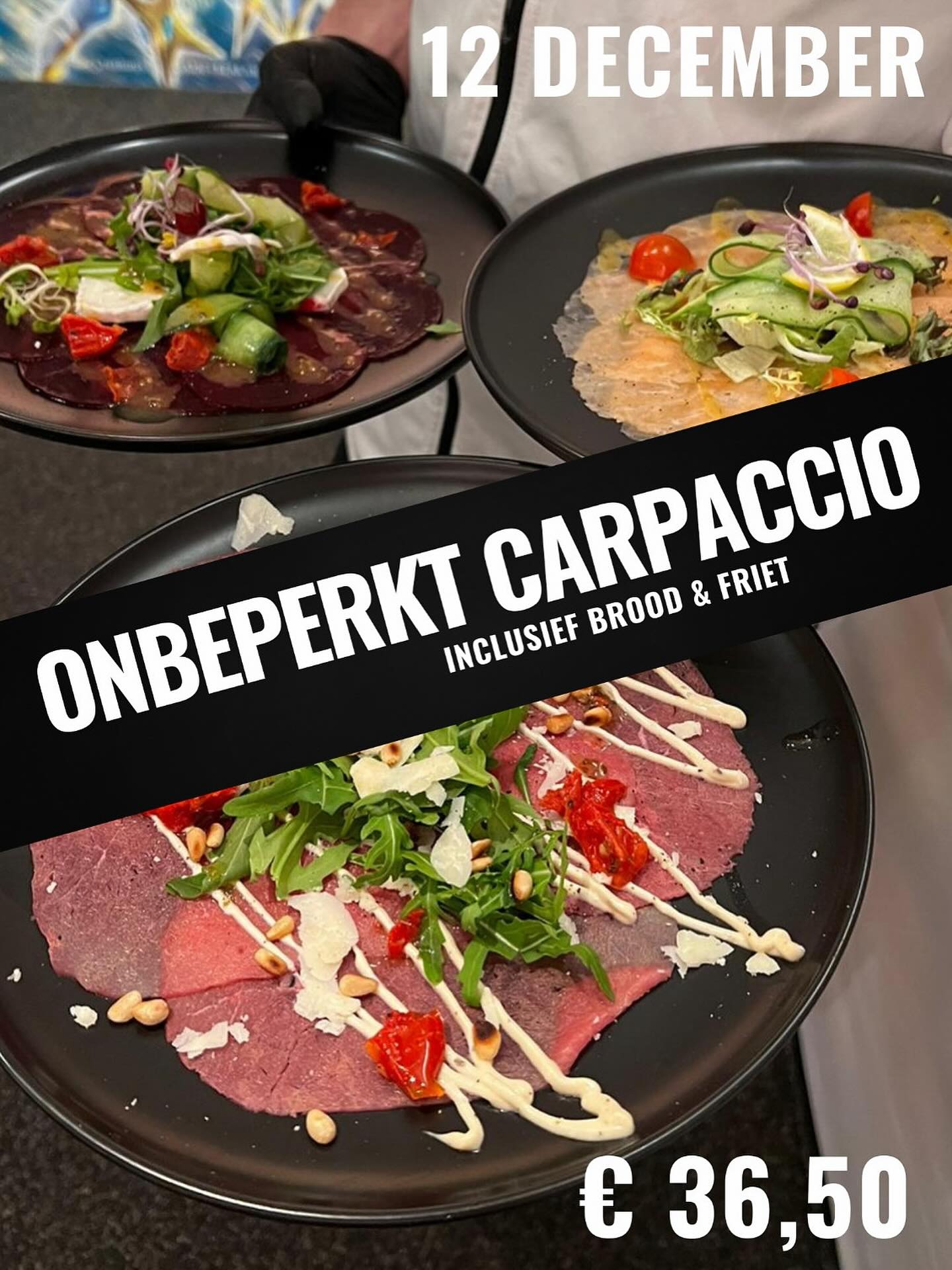 Geniet aankomende vrijdag 12 december van heerlijke onbeperkte carpaccio bij Vrienden van de Peel.