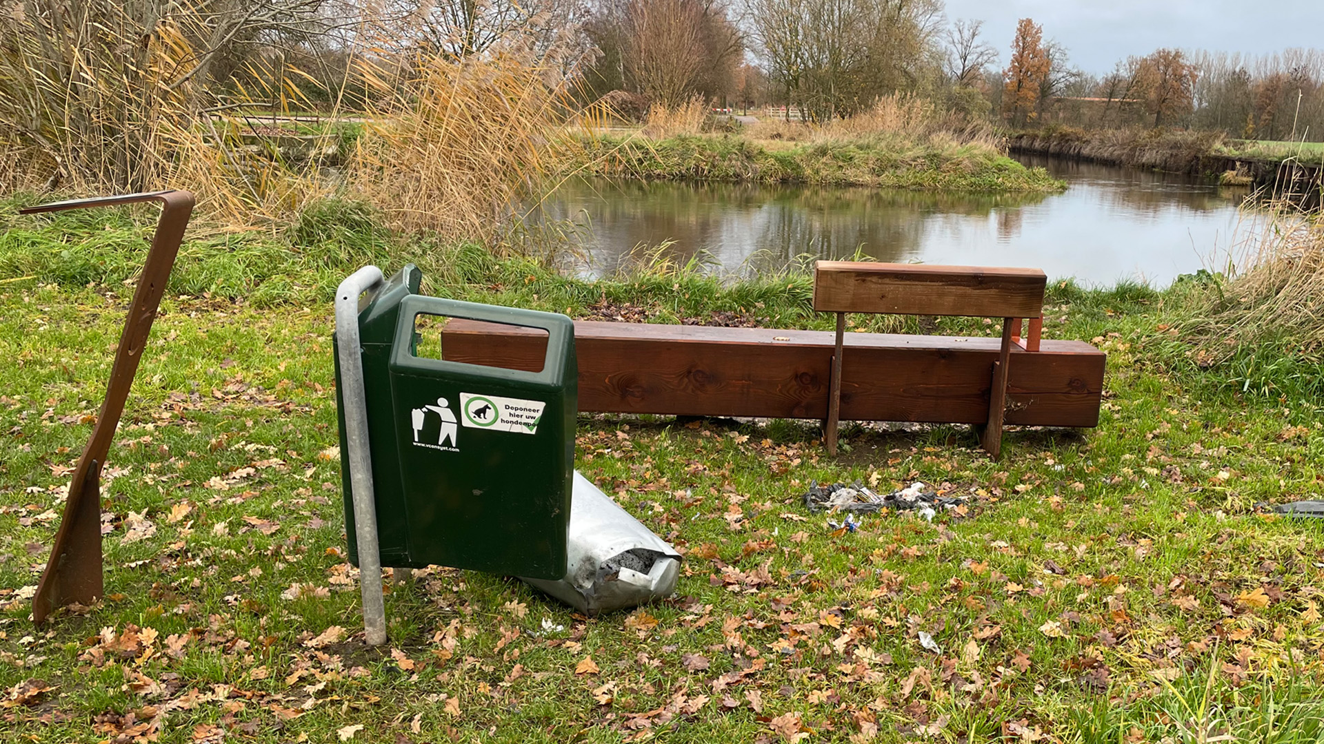 Bij het voedingskanaaltje is dit weekend een prullenbak vernield. Een ondernemer uit Nederweert heeft naar aanleiding hiervan een beloning van €250 beschikbaar gesteld voor degene die de dader kan melden.