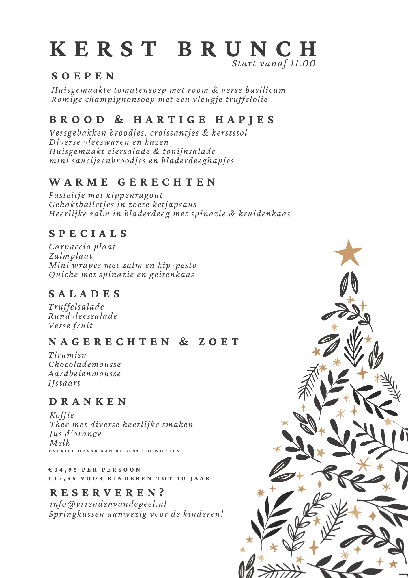 De feestdagen staan voor de deur en bij Vrienden van de Peel wordt dat graag samen gevierd. Op Eerste Kerstdag organiseert het team een sfeervolle kerstbrunch midden in de rust en warmte van de Peelse omgeving.