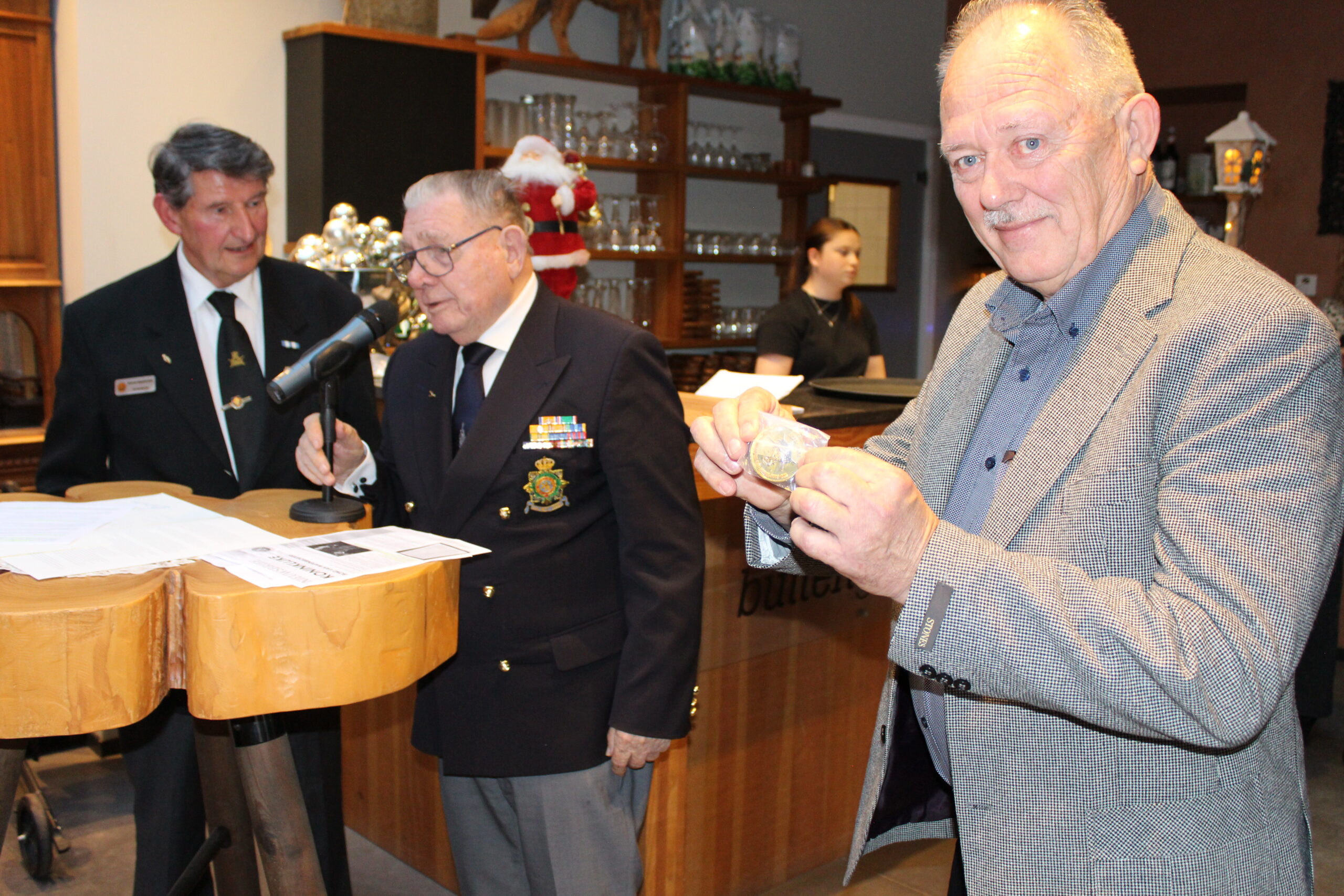 De kerstviering kreeg een extra feestelijk karakter door de officiële bevestiging dat de Bond van Wapenbroeders afdeling Ospel-Nederweert het predicaat ‘Koninklijk’ heeft ontvangen. Dit werd bekrachtigd met de ondertekening van het bijbehorende document door het landelijk bondsbestuur, bestaande uit voorzitter Klaas Orsel en secretaris Hans Kroes, beiden luitenant-kolonel b.d.
