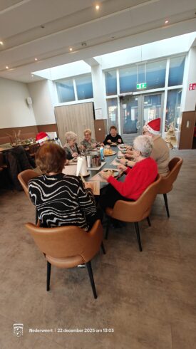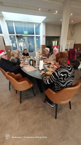 Op maandag 22 december stond er geen soep op het programma bij ‘Soep & Zo’, maar werd het jaar 2025 op feestelijke wijze afgesloten. Voor deze laatste bijeenkomst werd er samen kippenragout gemaakt.