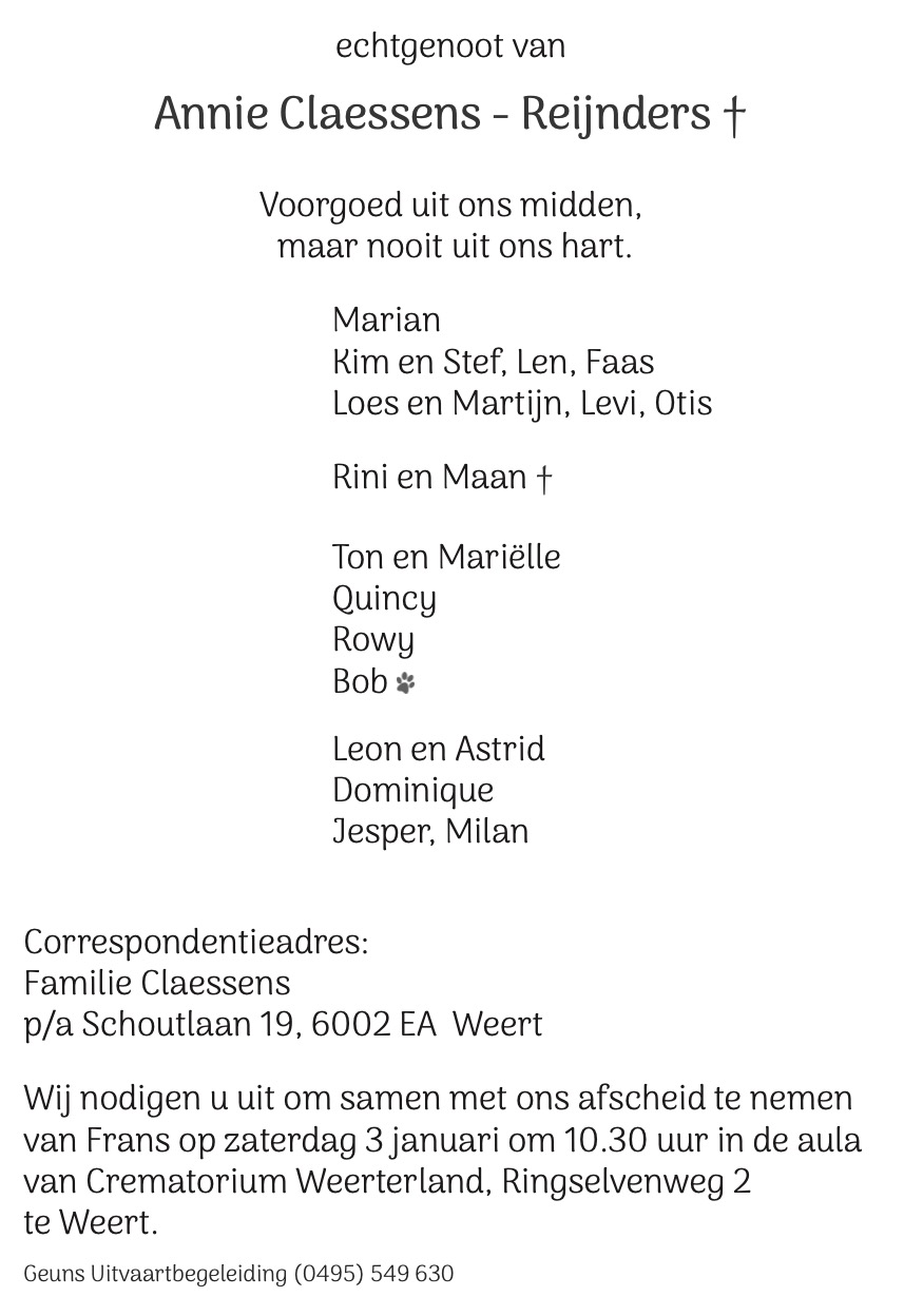 Overlijdensbericht | Frans Claessens †
