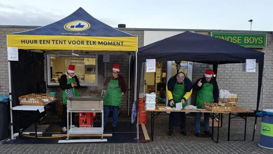 Al ruim voor die tijd ging men aan de slag om de grote hoeveelheid vooraf bestelde porties voor te bereiden. Een fantastisch geslaagde dag, waarmee Eindse Boys met een goed gevoel het jaar af kan sluiten.