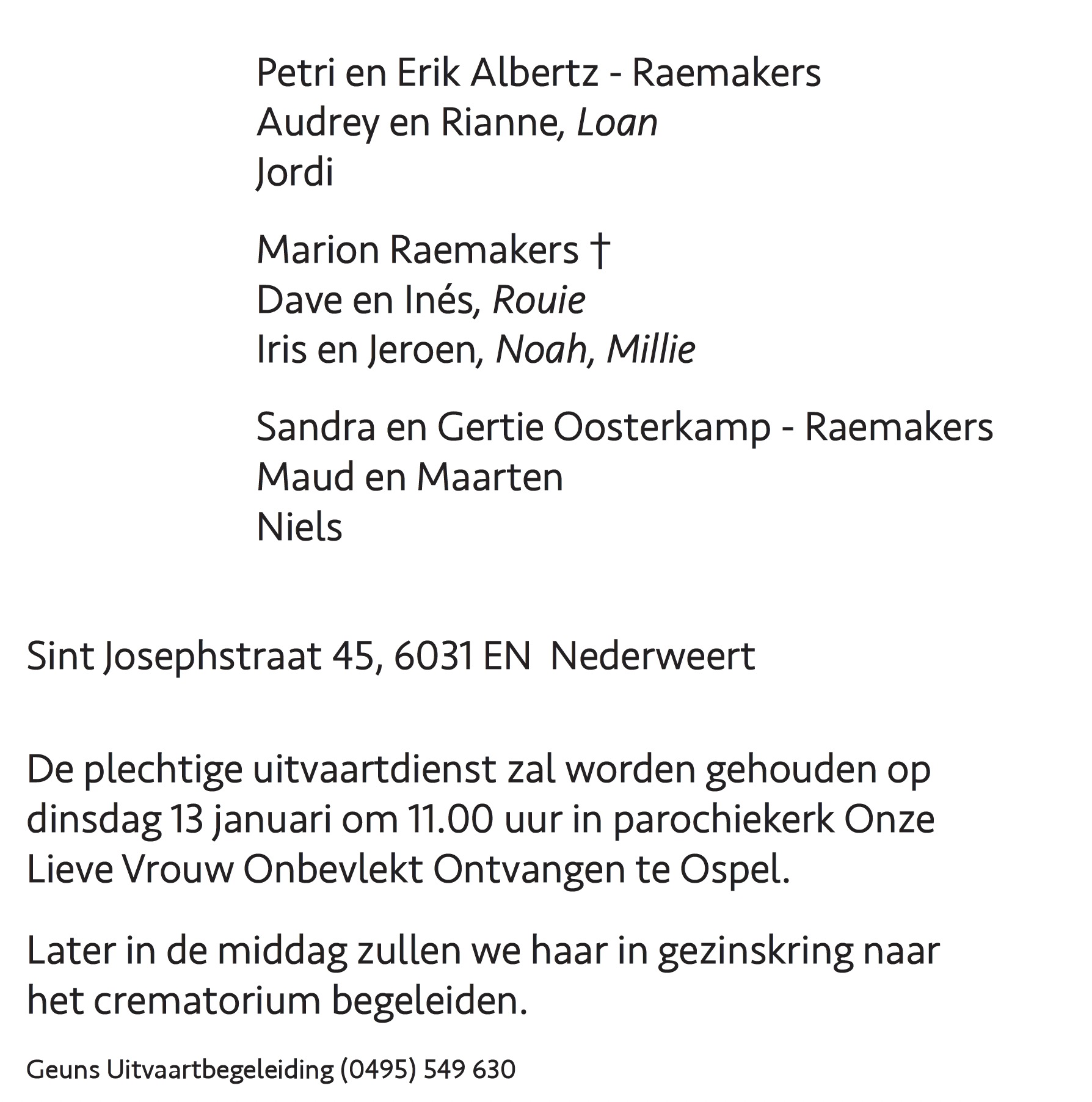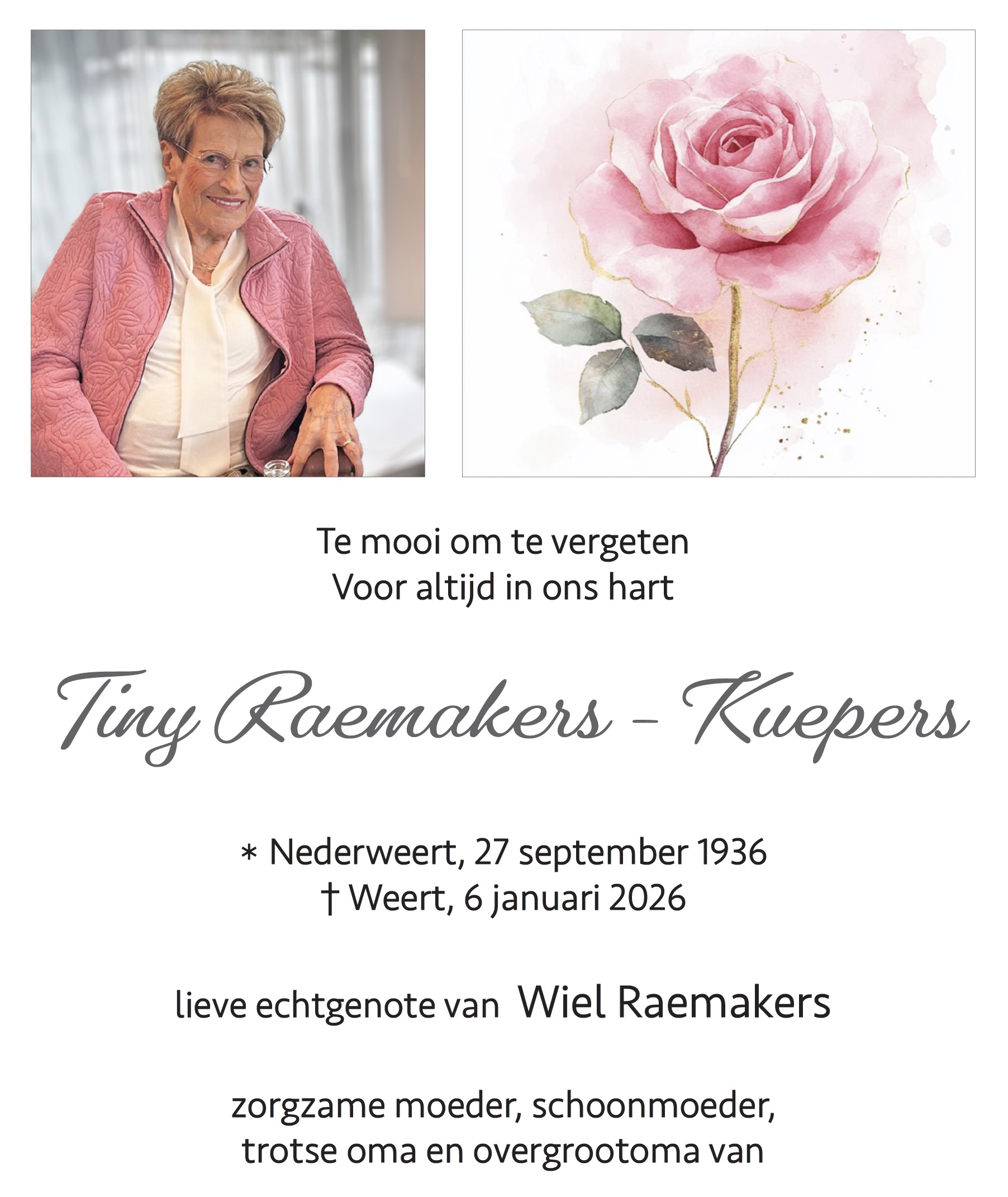 Overlijdensbericht | Tiny Raemakers – Kuepers †