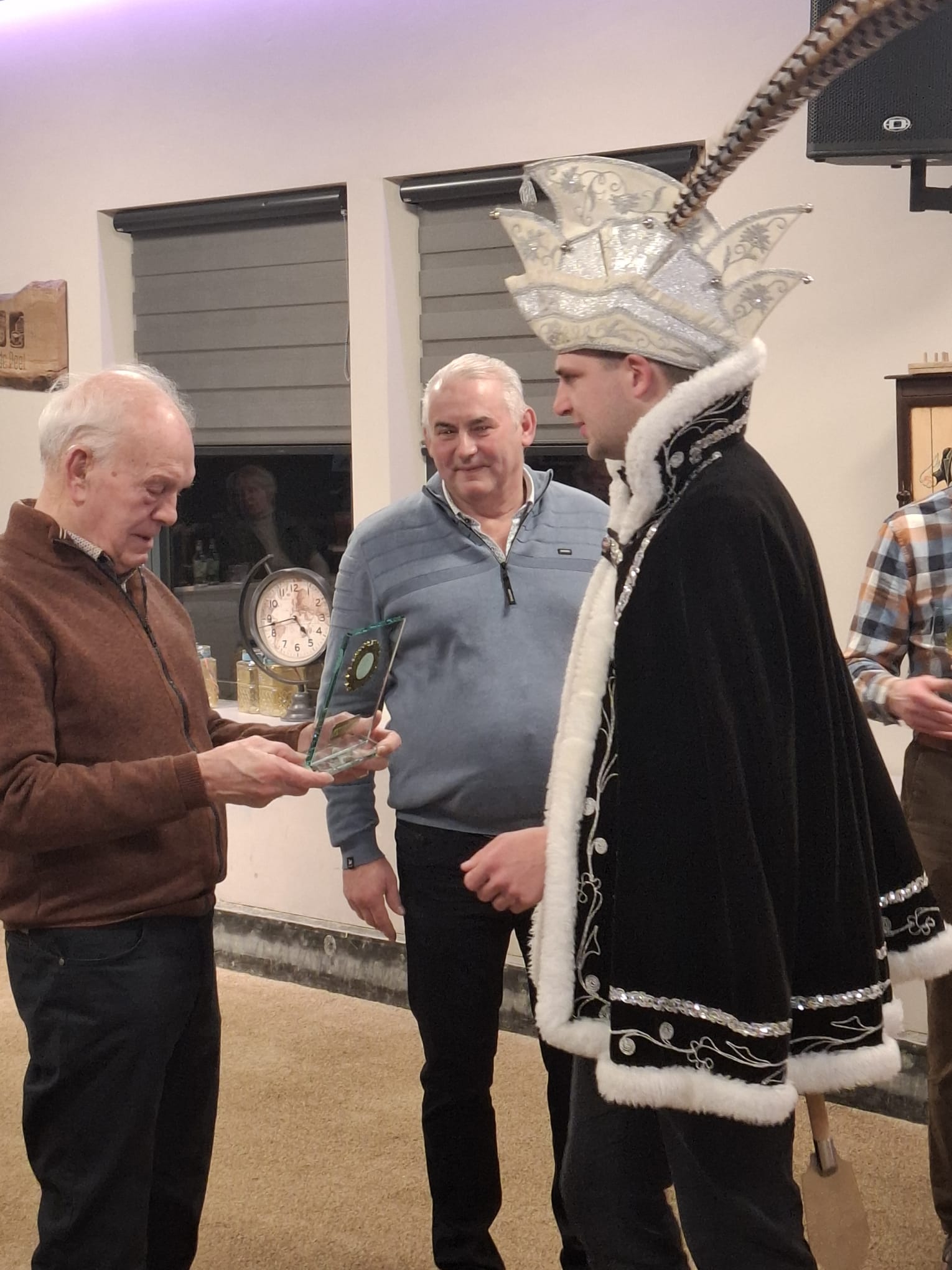 Dit jaar waren prins Luuk van de Törfstaekers, adjudant Jordy en een deel van de raad van elf aanwezig om de bekers te overhandigen aan de finalisten. Eerst kreeg Anton de felicitaties en de prijs voor de tweede plaats. Vervolgens mocht oud prins Twan (van de Pinmaekers, 1964) de felicitaties, de beker en de wisselbeker van  prins Luuk in ontvangst nemen.  Daarna kregen beide spelers nog een onderscheiding van prins Luuk.