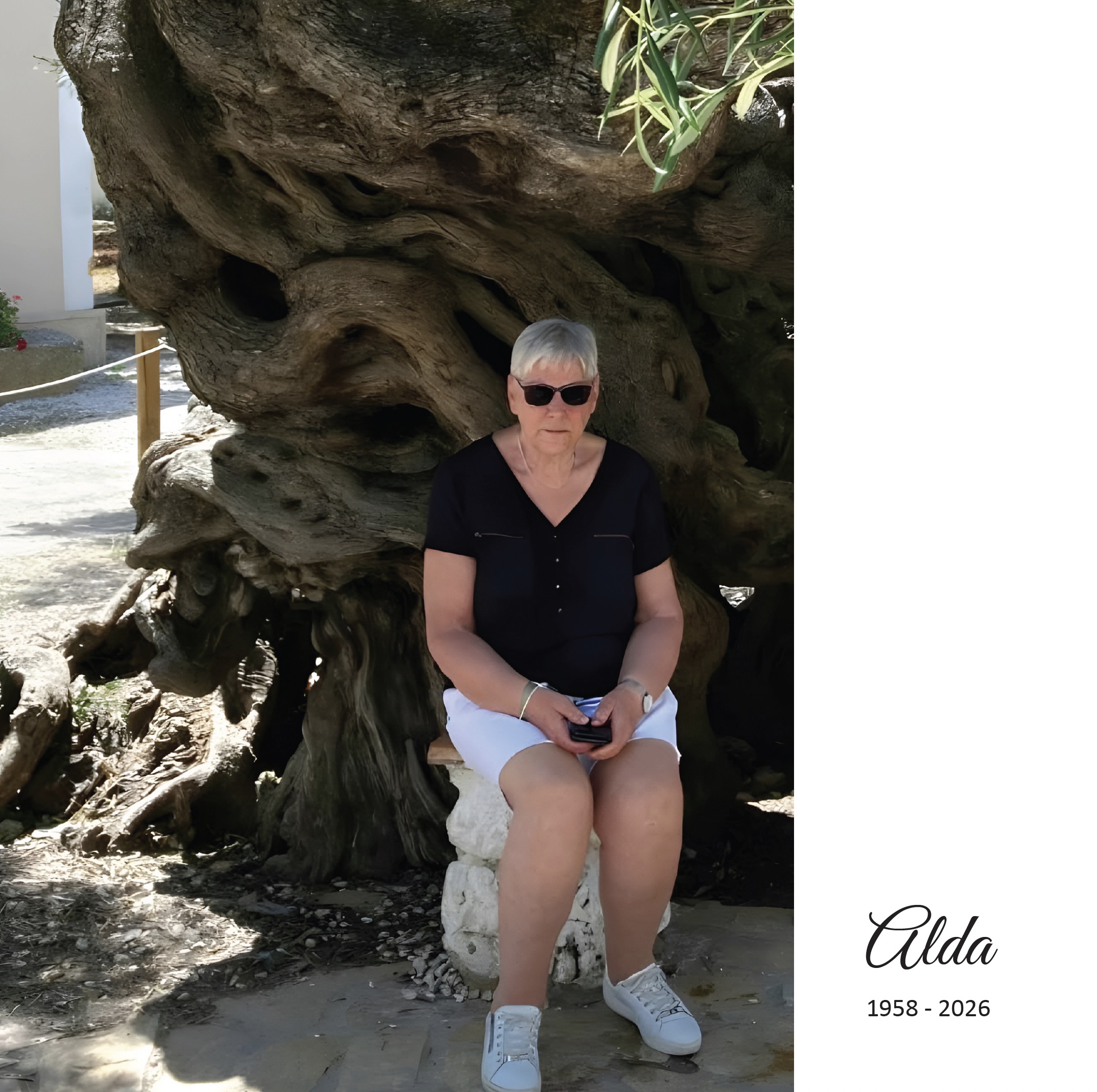 Gecondoleerd en heel veel sterkte met het verlies van Alda. Veel te jong.