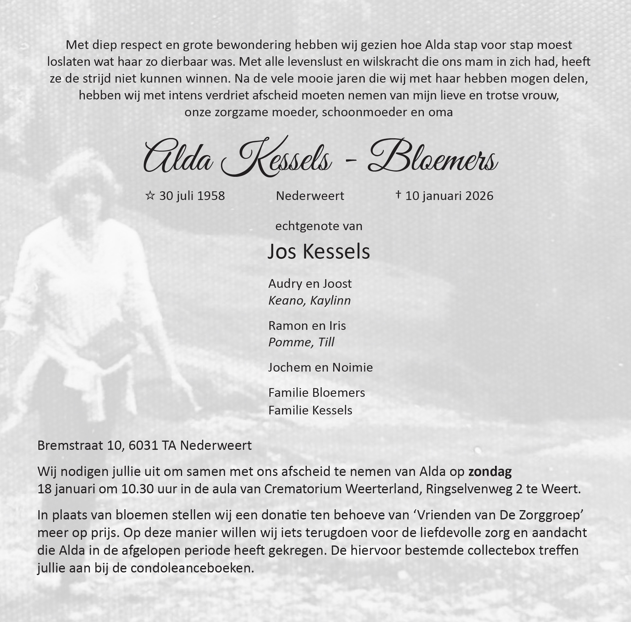 Overlijdensbericht | Alda Kessels – Bloemers †