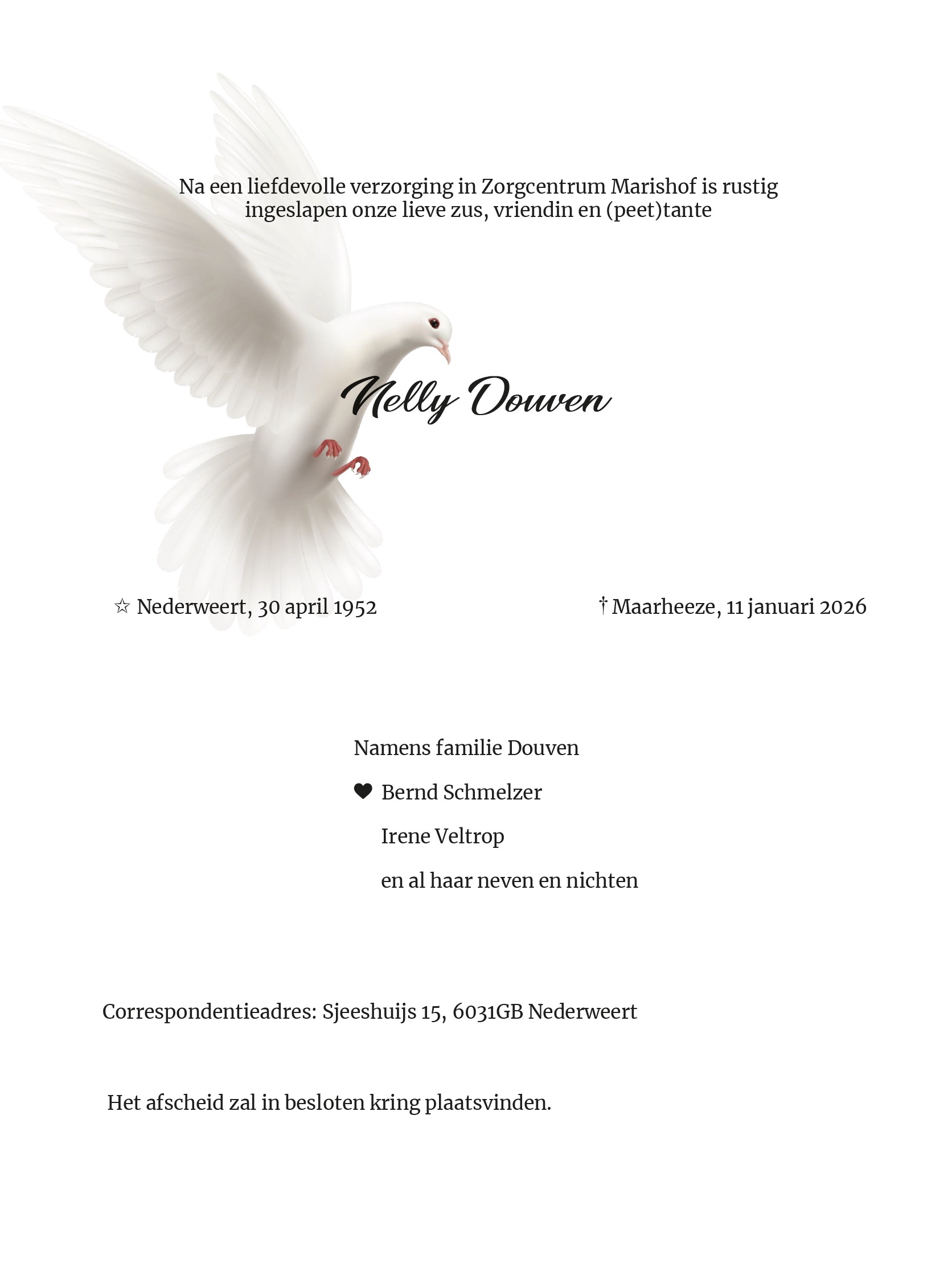 Overlijdensbericht | Nelly Douven †