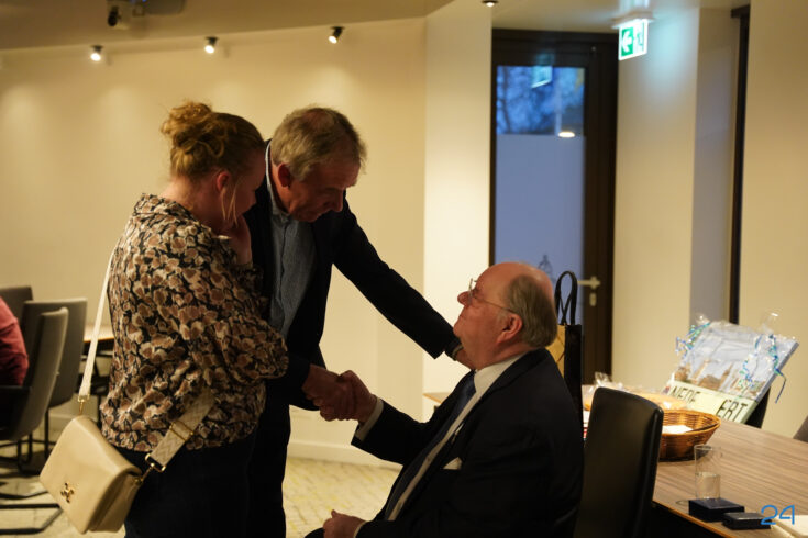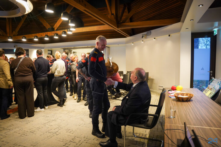 De belangstelling was dan ook groot en het werd al snel druk in de raadzaal van het gemeentehuis. Veel mensen maakten van de gelegenheid gebruik om Giel persoonlijk de hand te schudden en hem een kort woordje toe te spreken.