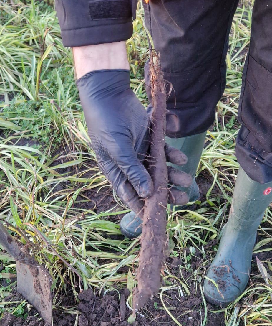 Schorseneren worden ingedeeld in klassen op basis van dikte en hun lengte. Een lange, rechte schorseneer is de trots van elke teler! Hoeveel cm lang is de schorseneer op de foto, geteeld door Eric?